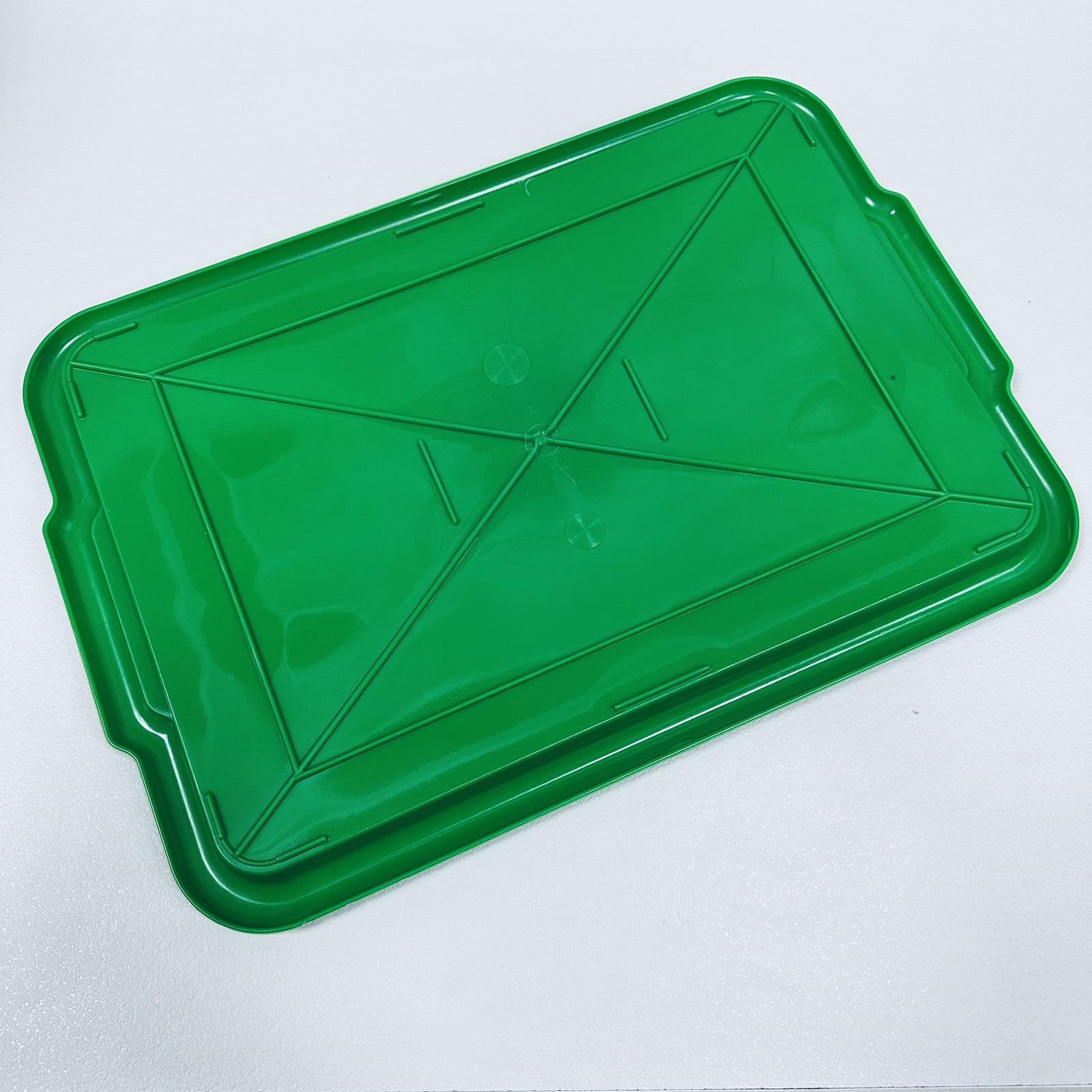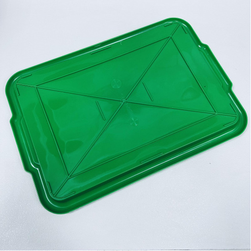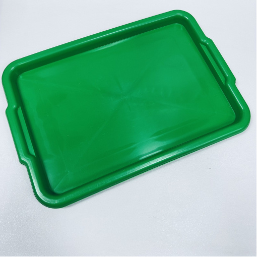 Характеристика: Вид: Піднос Матеріал: Пластик Форма: Прямокутна Розмір: 45*30*1,5 см, робоча частина – 36*24 см Колір: Зелений