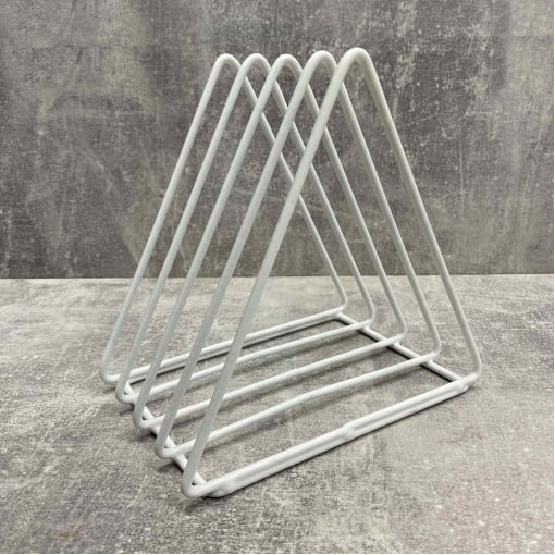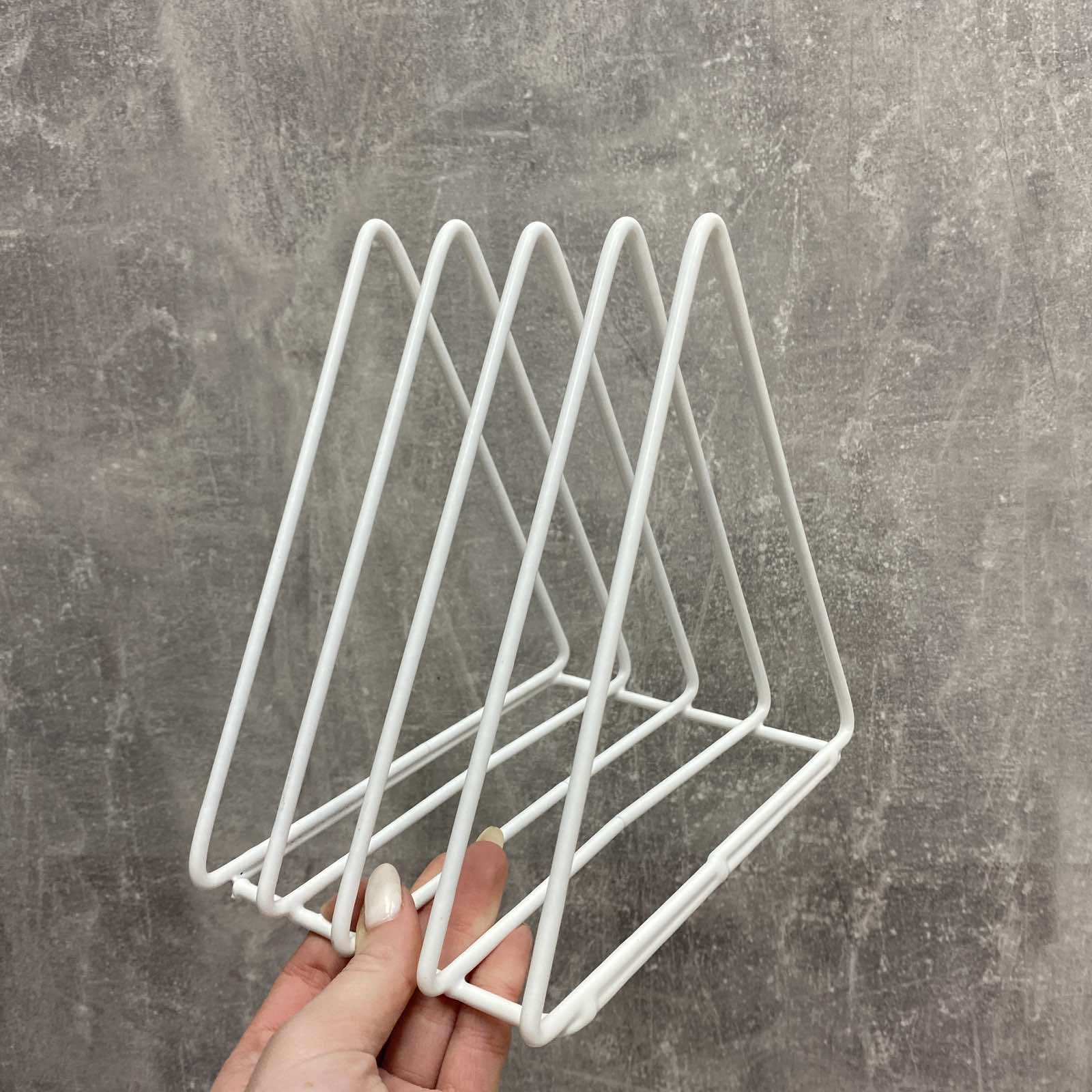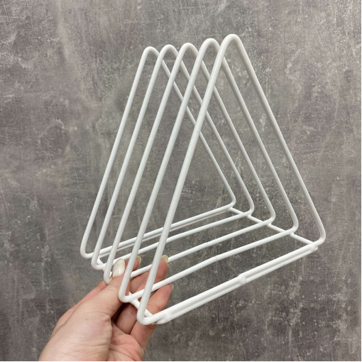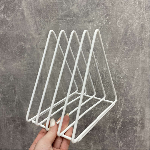 Підставка під дошки, книги, журнали 13*17*20 см біла 95864521/1002 Підставка ідеально підійде для тих, у кого вдома багато журналів, книг, документів або іншої літератури. Допоможе красиво та стильно скласти книги і вони завжди будуть у вас під руками. Підставка виготовлена ​​з металевого дроту, покрита порошковою фарбою. Характеристика: Вид: Підставка Призначення: Для дощок, книги, журнали Матеріал: Металевий дріт Розмір: 13*17*20 см Колір: Білий