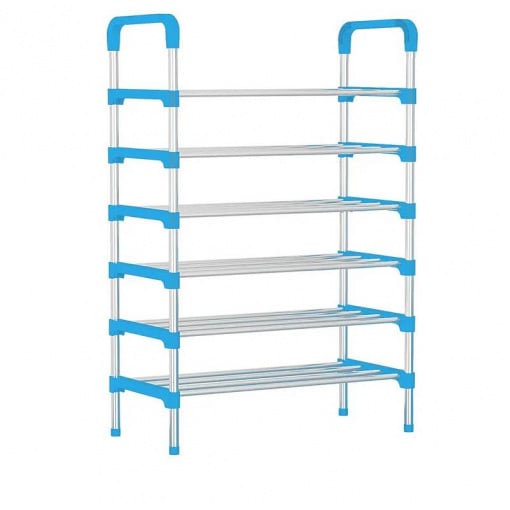 Полиця для взуття 6 рівнів 56*26*118 см. A-Plus 8068 сталева з блакитним