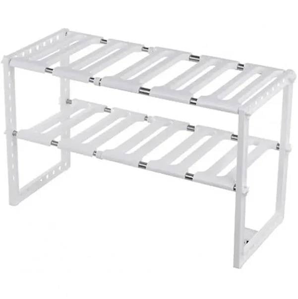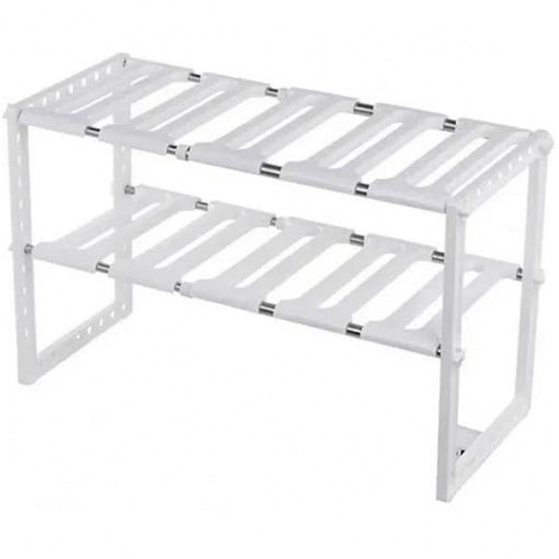 Полиця-органайзер розсувна 2 яруси з регулюванням 50-70 см MAG-588 Розсувна полиця-органайзер може бути встановлена ​​навіть в обмеженому просторі з трубами за рахунок своєї розсувної поверхні. Ширина полиці для кухні в шафі від 50 см до 70 см, глибина 26 см, висота 38 см. Полиця має білий колір, гладку пластикову поверхню, яку легко очищати. Характеристика: Вид: Полиця-органайзер Матеріал: Пластик Довжина: 50-70 см Ширина: 26 см Висота: 38 см Колір: Білий Призначення: Для зберігання