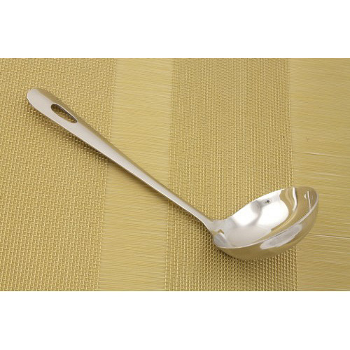 У кожному будинку, їдальні, ресторані є половник для розливу перших страв, соусів, компотів, киселів тощо. Пропонована модель половника для сервірування має невеликий розмір - всього 19 см. Виготовлений половник з нержавіючої сталі та стане гарним помічником при подачі соусів, супів та інших страв. Половник має зручну ручку з отвором для підвішування. Короткий стильний дизайн підійде до інтер'єру будь-якої кухні.