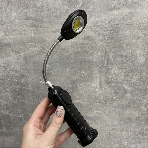 Ліхтарик-лампа зручний у використанні. Є магніт, за допомогою якого ви зможете причепити будь-де. Гнучкий корпус легко можна повернути в потрібну вам сторону.