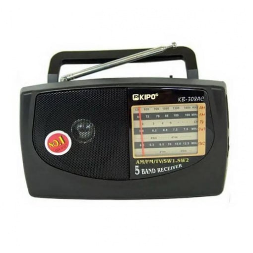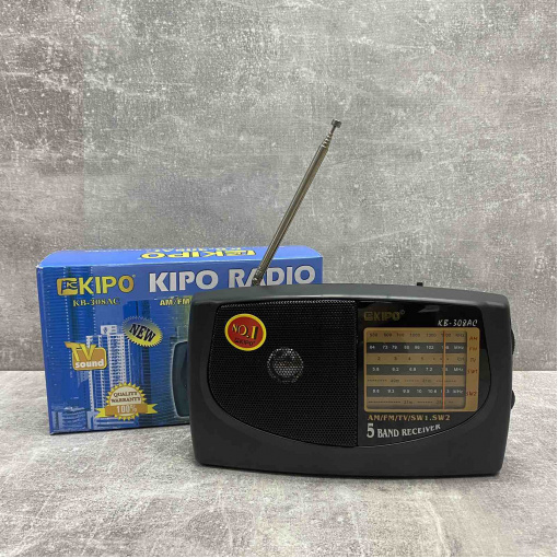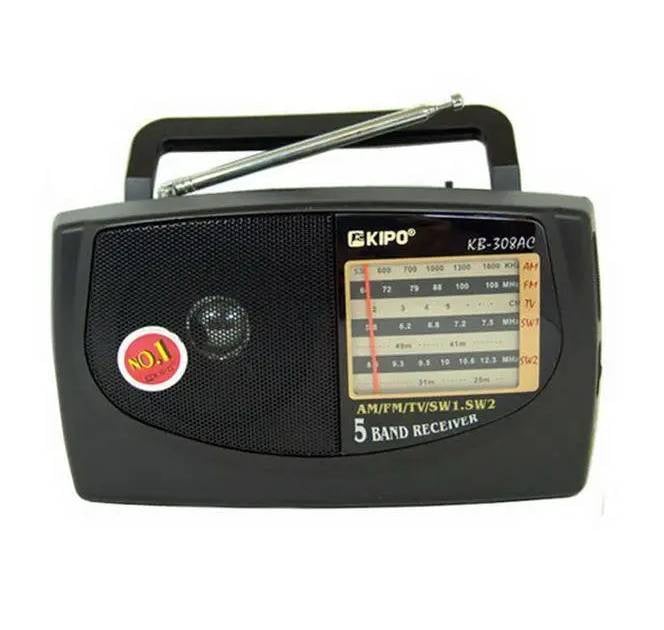 Радіоприймач Kipo KB-308 - ідеальний для відпочинку на природі. Компактні розміри, гарне звучання, автономне живлення, телескопічна антена, приємний дизайн. Відмінна якість. 5-ти хвильовий Радіоприймач: AM/FM/TV/SW1-2 — діапазони частотний діапазон: AM: 530-1600 кГц FM: 64-108 МГц TV: 2-5 SW1: 5,8 ― 7,5 МГц SW2: 8 ,8-12,3 МГц