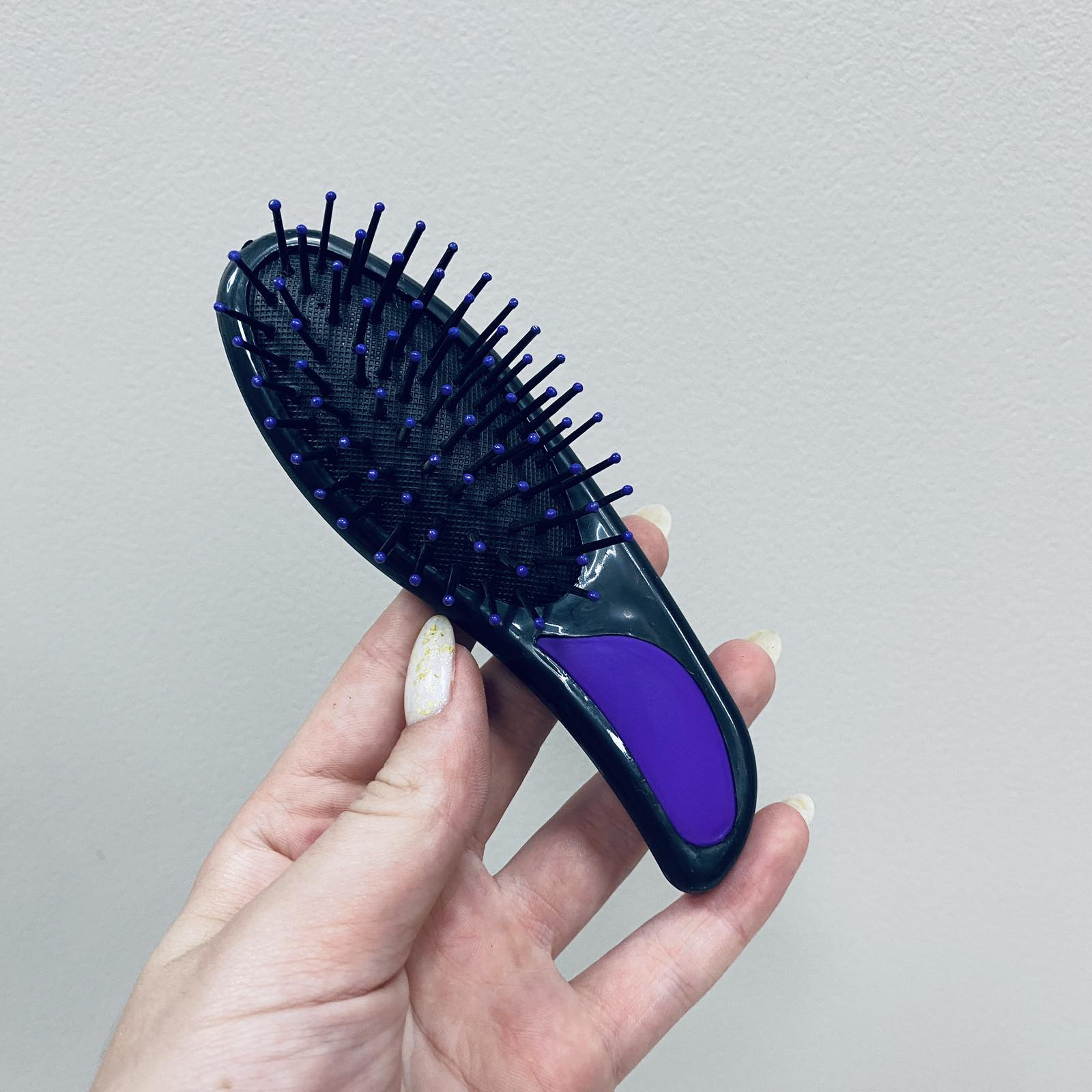 Розчіска пластикова для волосся Stenson Stenson 8580 чорна з фіолетовим Характеристика: Вид: Розчіска Матеріал: Пластик Колір: Чорний з фіолетовим Довжина: 14 см Ширина: 4,5 см