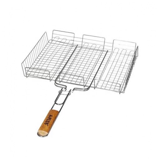 Решітка-гриль з бортами. Відрізняється зручним лотком із решіткою для регулювання по висоті та високими бортами. Допоможе вам швидко та просто приготувати смачну страву під час відпочинку на природі чи на дачі. Готування на решітці не вимагає особливих навичок чи вмінь - просто закладаєте у неї продукти, закриваєте ґрати та ставите на вугіллі. На решітці можна швидко приготувати м'ясо, рибу, овочі, підсмажити сосиски або ковбаски, втім, все, що душа забажає.