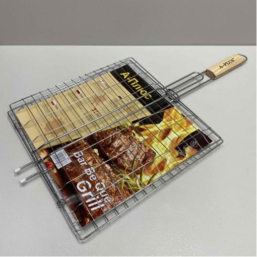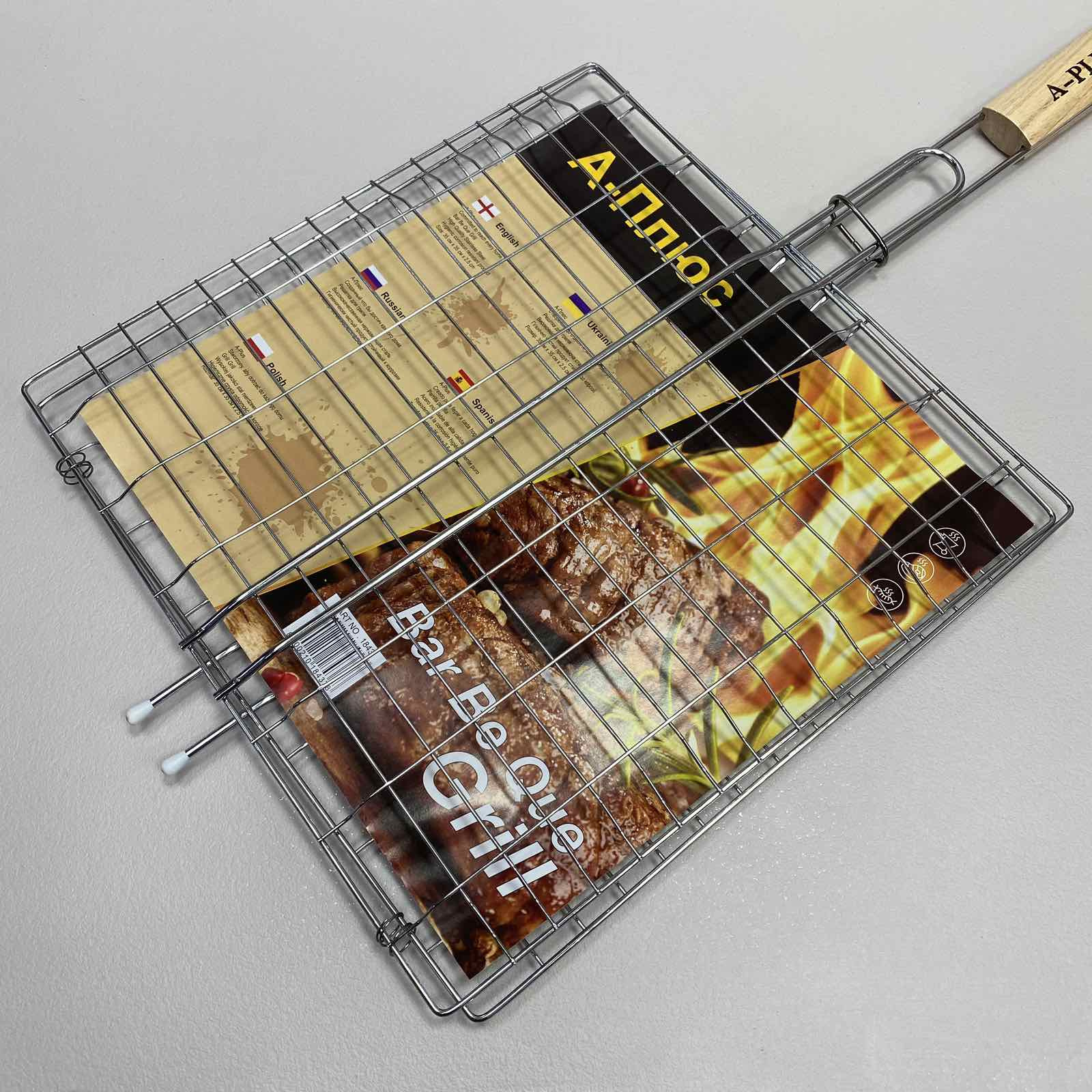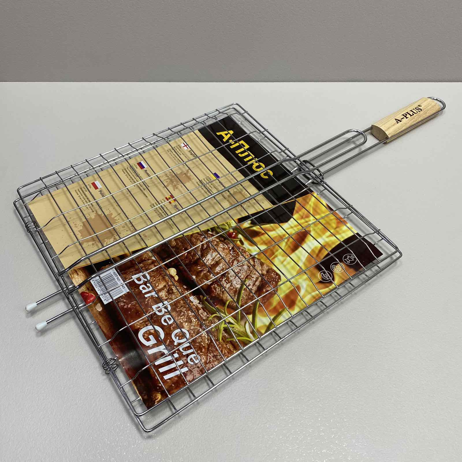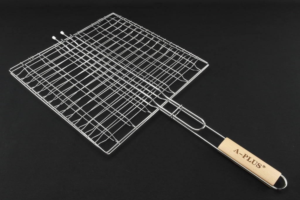 Решітка для гриля 35*35 см A-Plus 1843 Приготування на решітці заощаджує вашу годину. Також легко очистити після експлуатації навіть у прохолодній воді. Стане незамінним помічником для дому, на дачі чи рибалці. Прекрасно підходить для обладнання громадського харчування. Характеристика: Вид: Ґрати Матеріал: Нержавіюча сталь Матеріал ручки: Дерево Розмір: 35*35 см Довжина: 67,5 см Колір: Сталевий