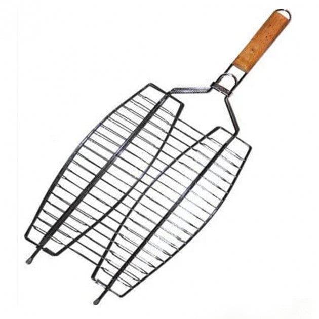 Барбекю решітка гриль для риби найкращий вибір для пікніка на природі та на дачі. З приходом теплої погоди багато хто вирушає на природу для відпочинку, а який відпочинок без смачно приготовлених продуктів на відкритому вогні. У цьому Вам допоможе такий чудовий пристрій, як решітка для гриля. Вона легка за вагою та зручна в експлуатації. Решітка барбекю для риби виготовлена з хромованої сталі, не піддається корозії, не виділяє шкідливих речовин і не змінює смаку та запаху їжі навіть при високій температурі, ручка дерев'яна. Форма та вдала конструкція барбекю для риби дає можливість легко закріпити грати на мангалі, а кільце на ручці фіксує грати. Готувати на решітці дуже зручно і швидко, а цікава форма переплетення прутів надасть дуже апетитний вигляд готовій рибці.