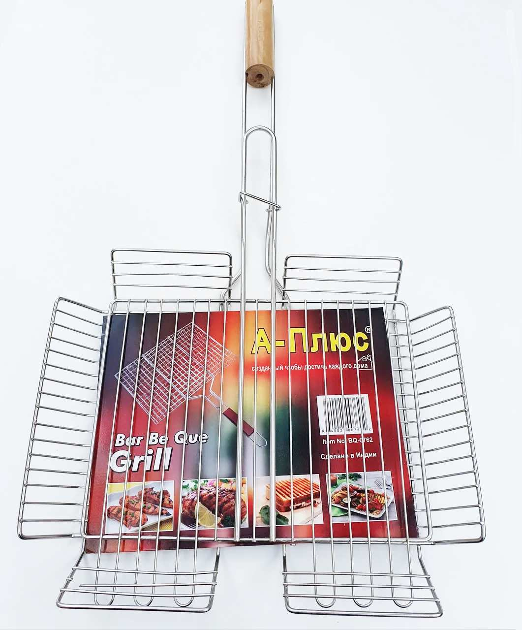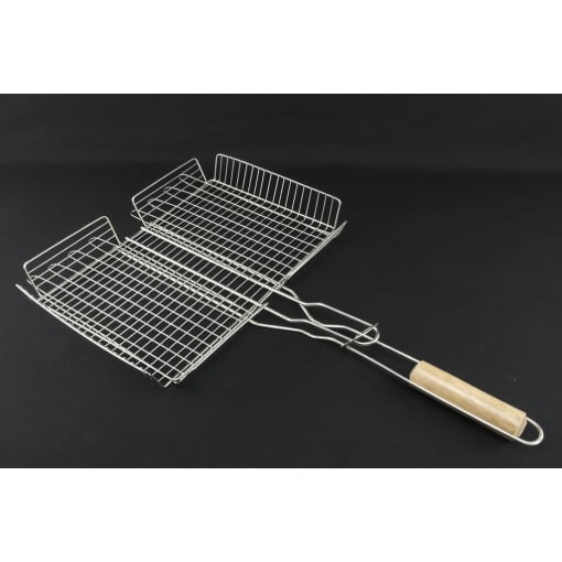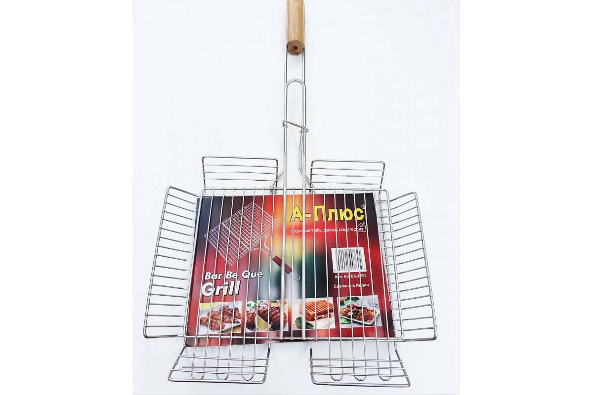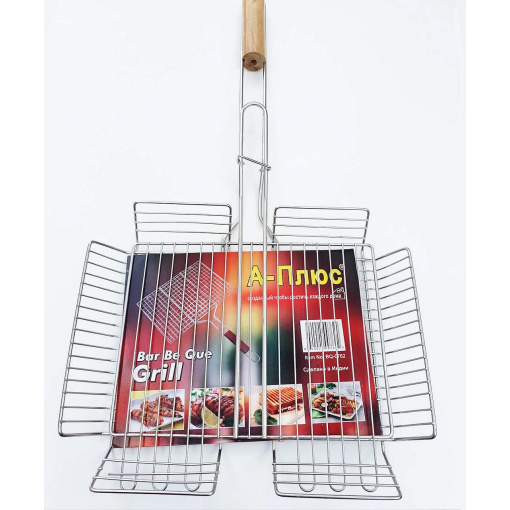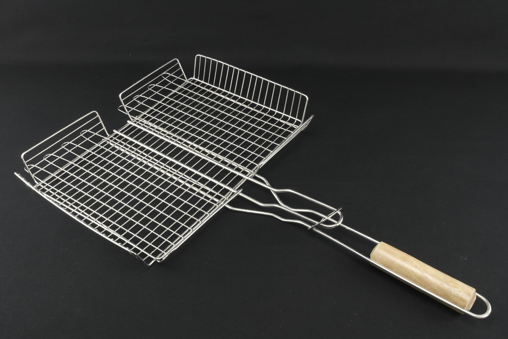 Барбекю решітка гриль найкращий вибір для пікніка на природі та на дачі. З приходом теплої погоди багато хто вирушає на природу для відпочинку, а який відпочинок без смачно приготовлених продуктів на відкритому вогні. У цьому Вам допоможе такий чудовий пристрій, як грати для гриля. Вона легка за вагою та зручна в експлуатації. Решітка барбекю виготовлена ​​з хромованої сталі, не піддається корозії, не виділяє шкідливих речовин і не змінює смаку та запаху їжі навіть при високій температурі, ручка дерев'яна. Форма та вдала конструкція барбекю дає можливість легко закріпити грати на мангалі, а кільце на ручці фіксує грати. Готувати на решітці дуже зручно і швидко, а цікава форма переплетення прутів надасть дуже апетитний вигляд.