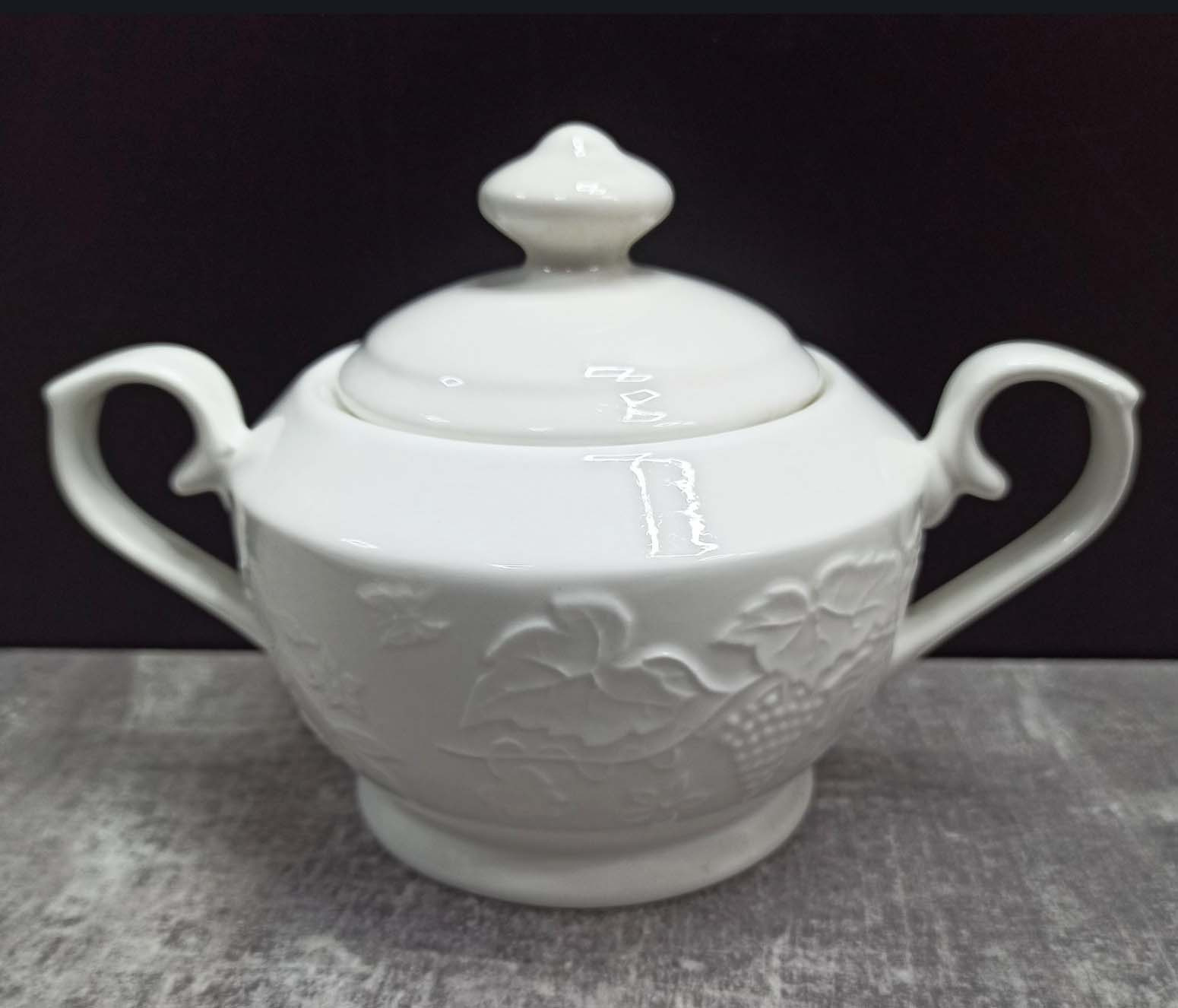 Цукорниця виготовлена з порцеляни. Така цукорниця легко миється і збереже привабливий зовнішній вигляд протягом тривалого часу. Дуже красиво виглядатиме при сервіруванні столу під час чаювання.