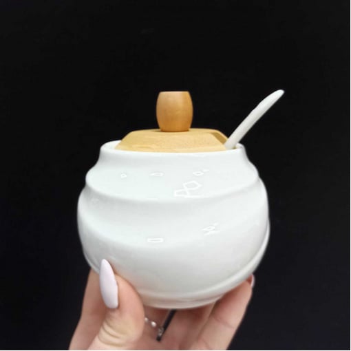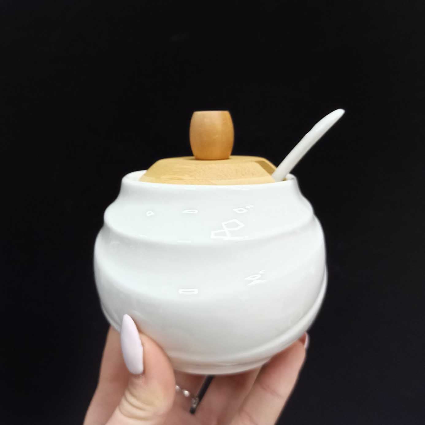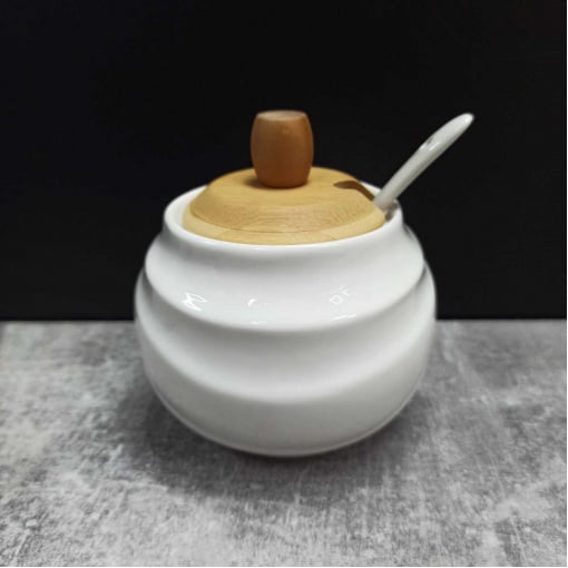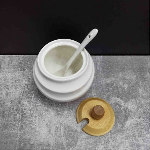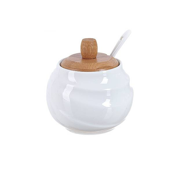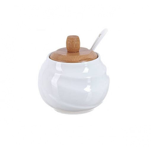 Цукорниця Ceram-Bamboo з ложкою та бамбуковою кришкою BonaDi 300 мл Білий BD-375-311