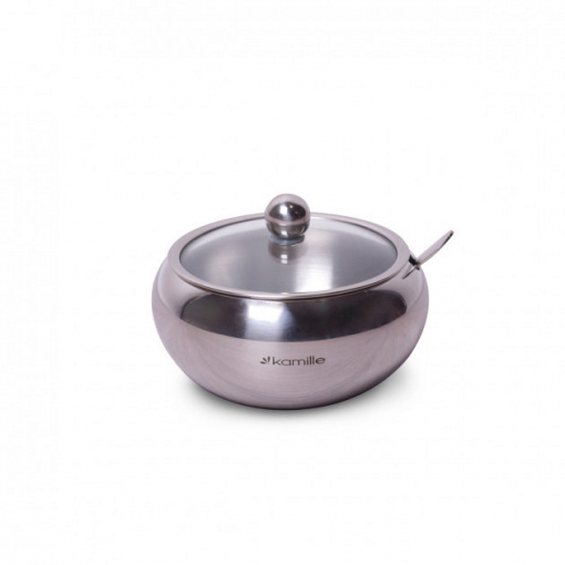 Цукорниця Kamille 560 мл з нержавіючої сталі з ложечкою та скляною кришкою КМ-7003