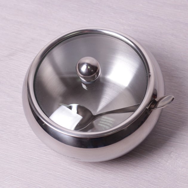 - Комплект: цукорниця з ложечкою та скляною кришкою