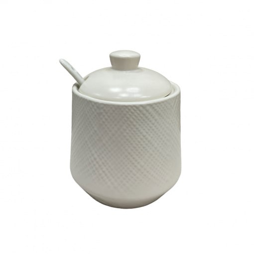 Цукорниця керамічна з ложкою h-11 см Maestro MR-20002-09 White