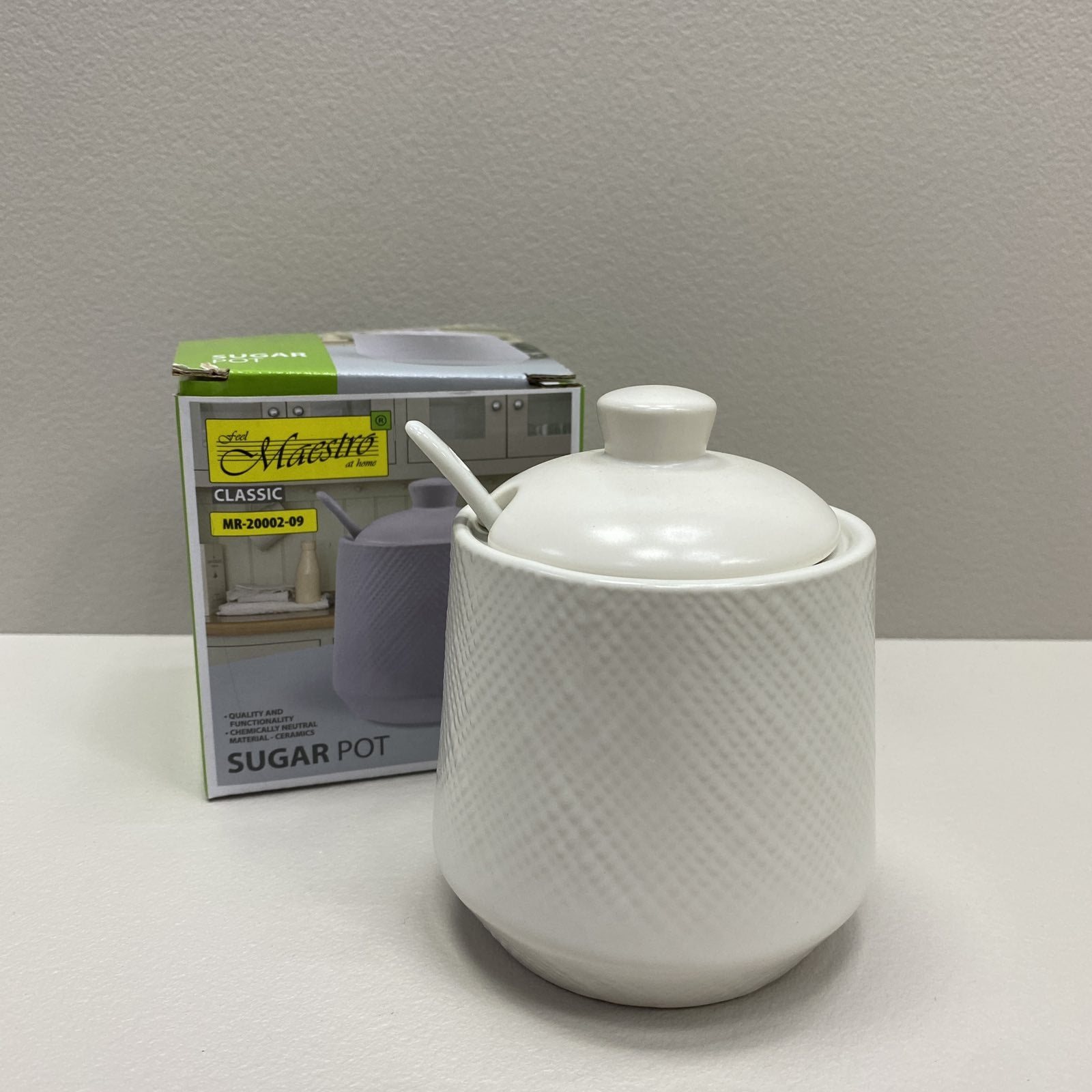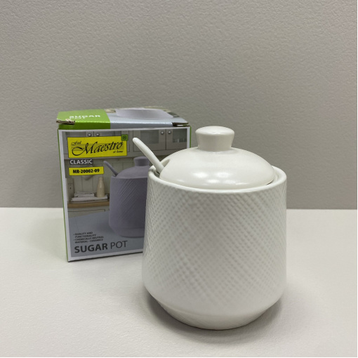Детальні характеристики Цукорниця керамічна з ложкою h-11 см Maestro MR-20002-09 White.
