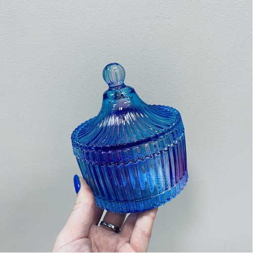 Цукорниця скляна з кришкою "Купол" веселка Olens O102-027 Вишуканий дизайн даної цукорниці робить її шикарним прикрасою будь-якого святкового столу. Навіть якщо ви поставите її на обідній стіл, вона перетворить буденний стіл у святковий своїм прекрасним видом, Характеристика: Вид: Цукорниця Матеріал: Скло Діаметр: 10,5 см Висота: 12 см
