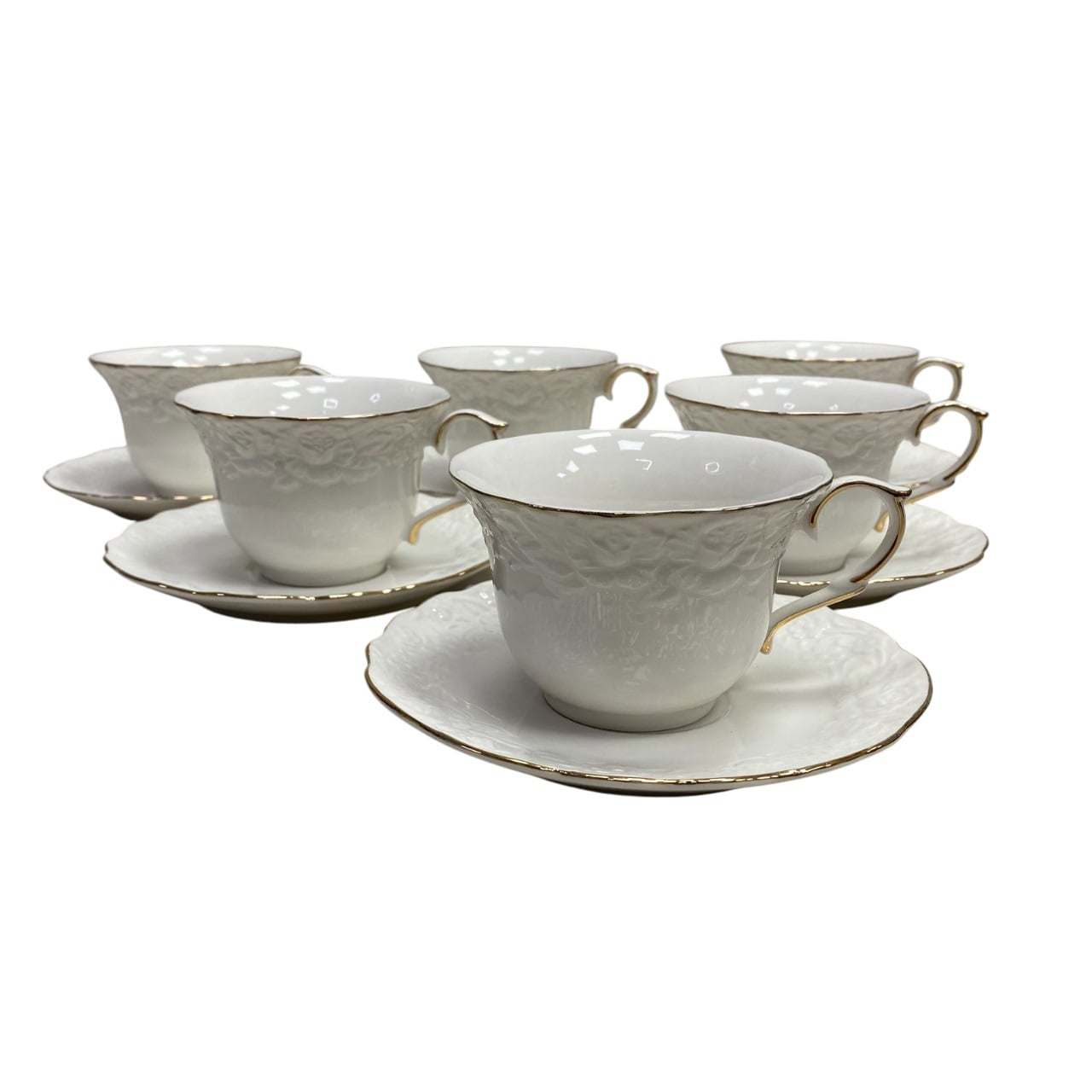 Він стане чудовим доповненням до вашого інтер'єру, надаючи йому вишуканий та елегантний вигляд. Характеристика: Вид: Сервіз чайний Матеріал: Порцеляна Кількість предметів у наборі: 12 Комплектація: чашки – 6 шт, блюдця – 6 шт Об'єм: 220 мл Колір: Білий Розмір: чашка – d –9,6 см, h –6,6 см. Діаметр: 15 см