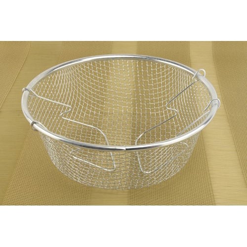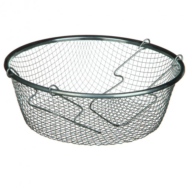 Виготовлена з нержавіючої сталі у вигляді сітки, що забезпечує безпечне та довговічне використання у фритюрницях, скороварках. Підходить для швидкого приготування в розпеченій олії м'ясних, овочевих, рибних закусок, і дозволяє практично відразу позбавитися надлишків жиру. За допомогою двох ручок, що складаються, і невеликої ваги, кошик можна безпечно переміщати. Посуд легко миється у теплій воді за допомогою м'якої губки.