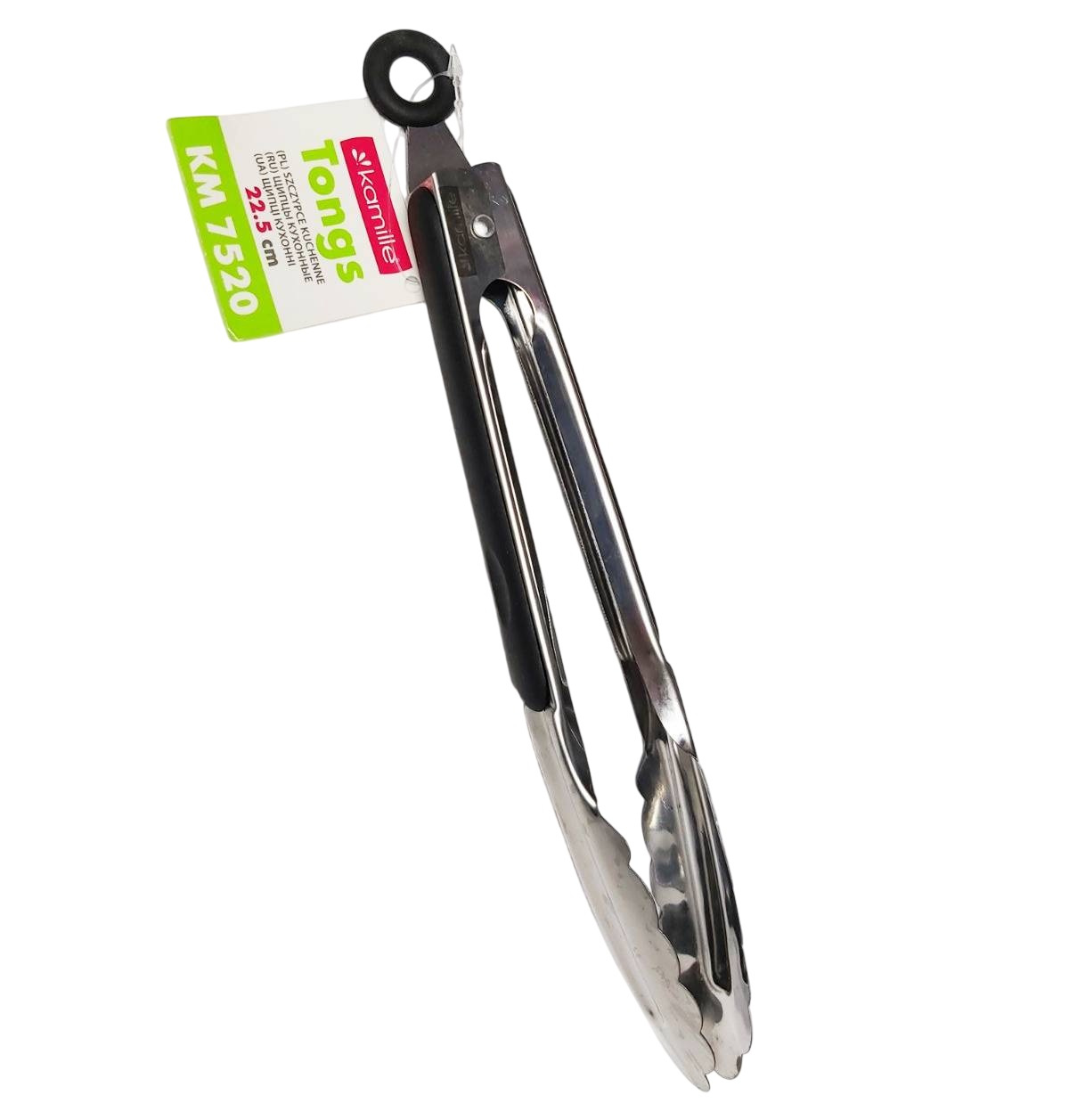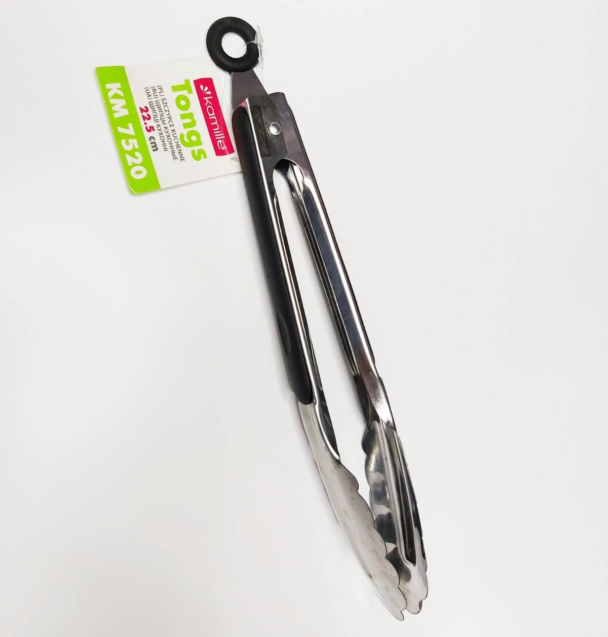 Кухонні щипці Kamille – дуже корисний аксесуар на Вашій кухні. Робоча частина виготовлена з високоякісної нержавіючої сталі, а на ручках є м'які силіконові вставки, завдяки чому щипці не ковзатимуть і Ви зможете впевнено тримати їх у руці. Також наприкінці рукоятки є спеціальне кільце, за допомогою якого можна зберігати щипці, підвісивши їх на гачок. Щипці 22.5 см із нержавіючої сталі Kamille КМ-7520 Характеристики: Матеріал: нержавіюча сталь, силіконові вставки на ручках Довжина: 22.5 см Особливості: сучасний стильний дизайн багатофункціональність можна мити в посудомийній машині оснащені спеціальним кільцем для підвішування