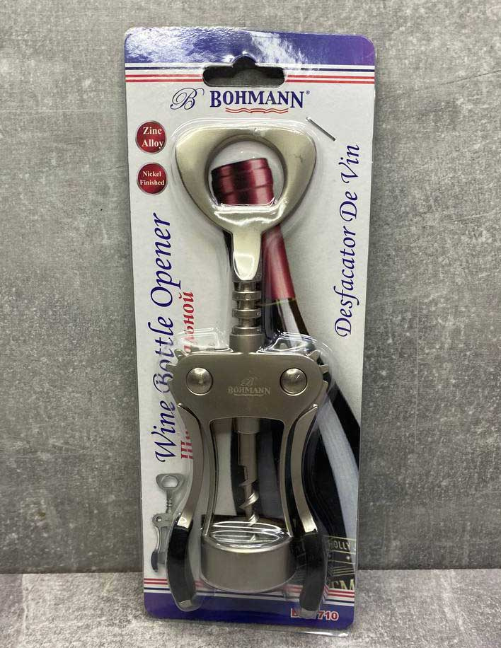 Штопор Bohmann BH-7710 допоможе без особливих зусиль і максимально швидко відкоркувати пляшку з напоєм. Він виконаний у зручній формі, не вислизає з рук у процесі. З матеріалів використовується метал, який відрізняється максимальною міцністю та зносостійкістю.