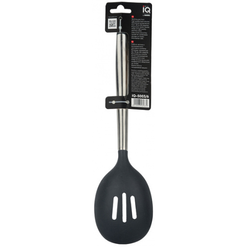 Робоча частина високоякісного харчового силікону. Витримує температуру від -40 до +210 градусів. Ергономічна стильна ручка із високоякісної нержавіючої сталі. Отвір на кінці ручки для комфортного зберігання на гачках. Можна мити в посудомийній машині.