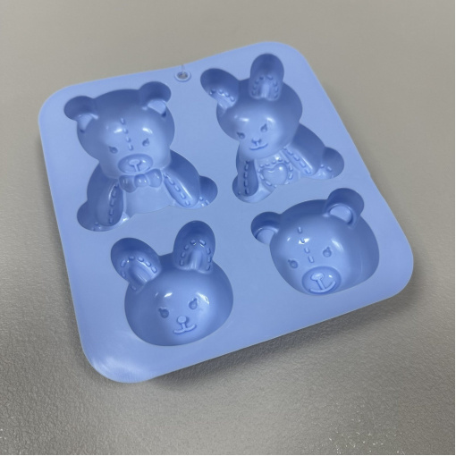 Силіконова форма для випічки "Кролик і ведмедик" блакитна S&T 3200-70