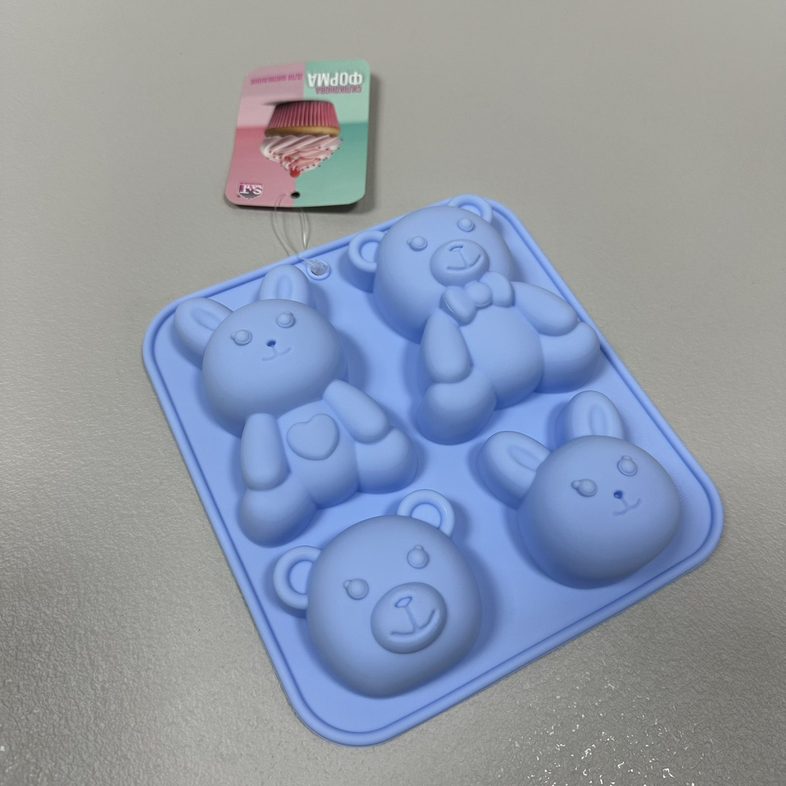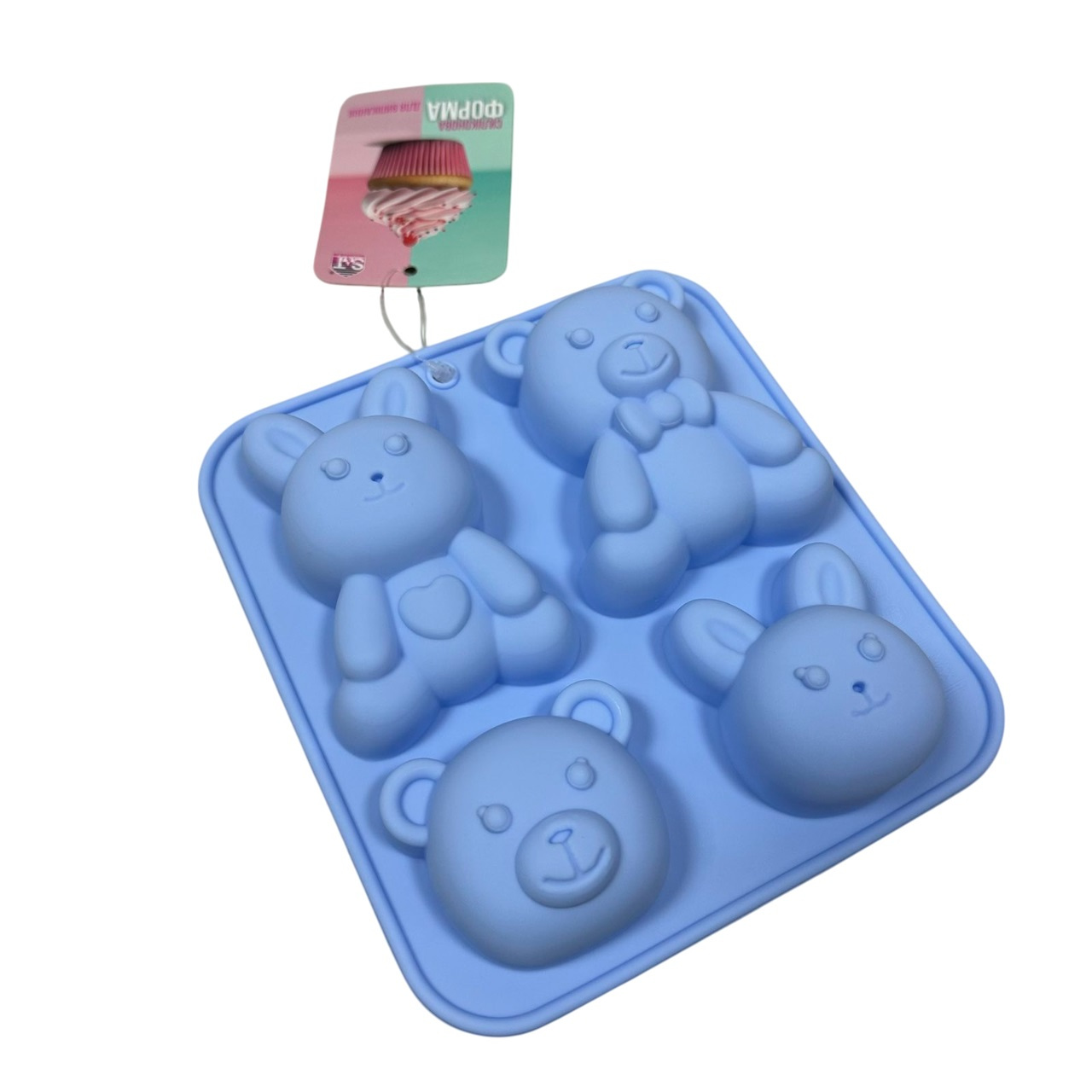 Силіконова форма для випічки S&T 3200-70 «Зайчик і ведмедик» 15х14х2,5 см Блакитний (23401)