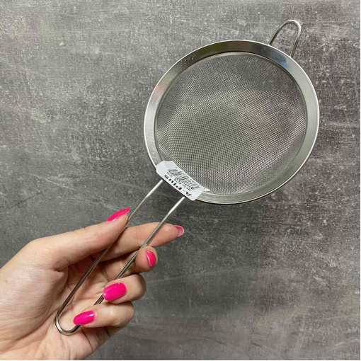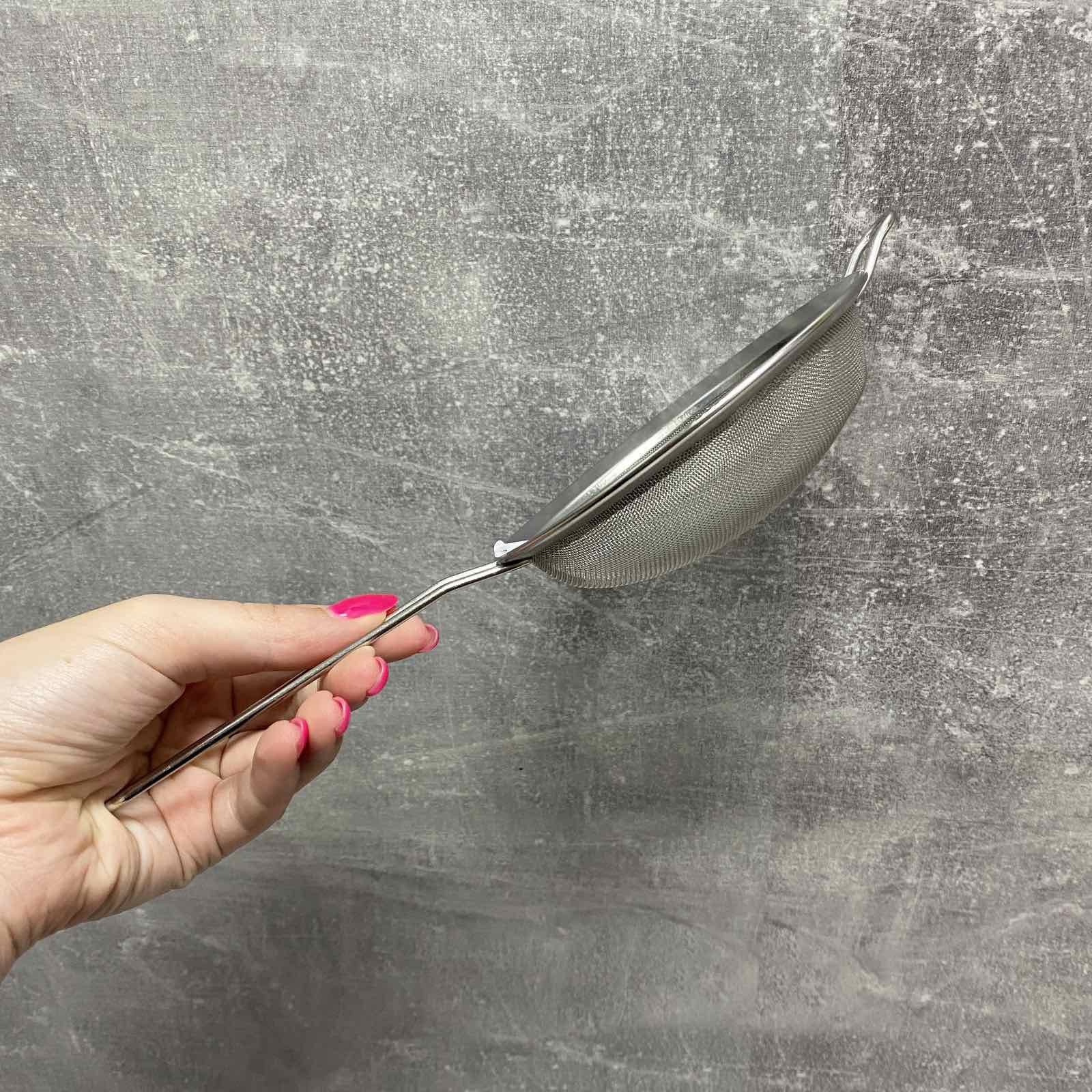 Сито із високоякісної нержавіючої сталі. Сталь є міцним і довговічним матеріалом, який не піддається корозії та впливу кислот, а також має високі гігієнічні властивості. Оснащена зручною ручкою із нержавіючої сталі. Підійде для різних цілей на побутовій чи професійній кухні.