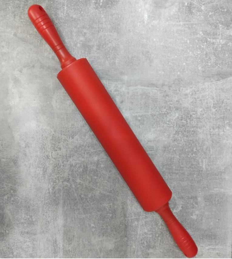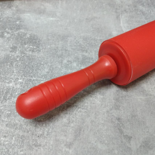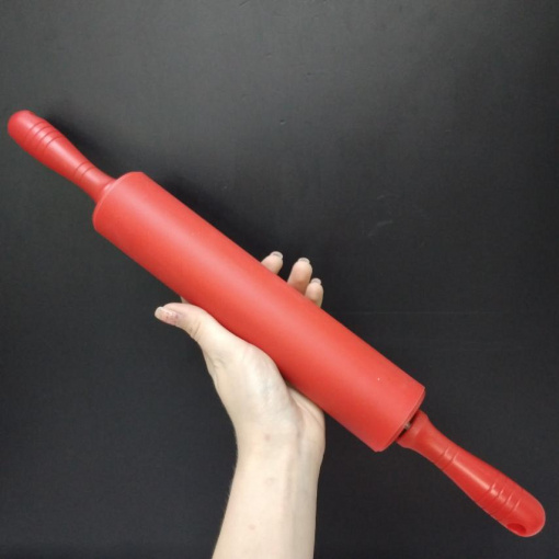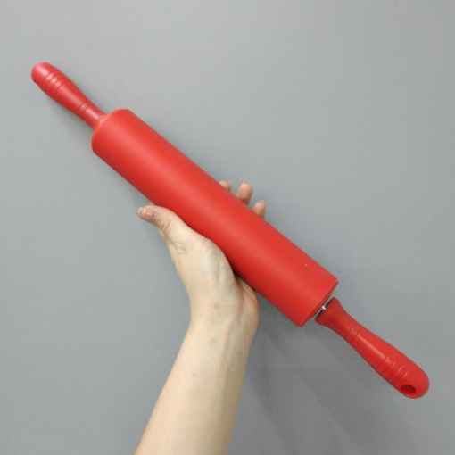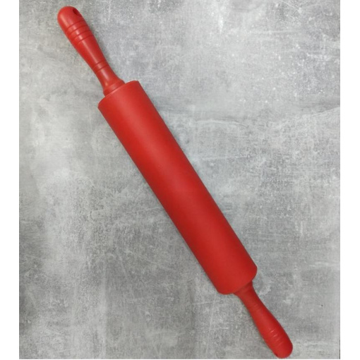 Класична качалка 45 см червона з силіконовим покриттям. Довжина робочої поверхні качалки 25 см, загальна довжина 45 см. Прекрасно підходить для розкочування дуже тонкого тіста для коржа або піци і, при цьому, тісто не треба посипати борошном або змащувати маслом.
