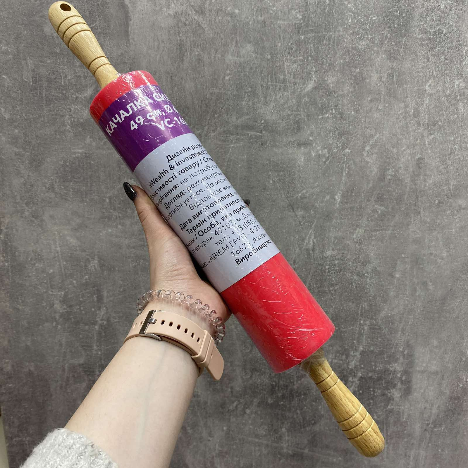 Детальні характеристики Скалка силіконова з дерев'яними ручками 49 см Vincent Basic VC-1628.