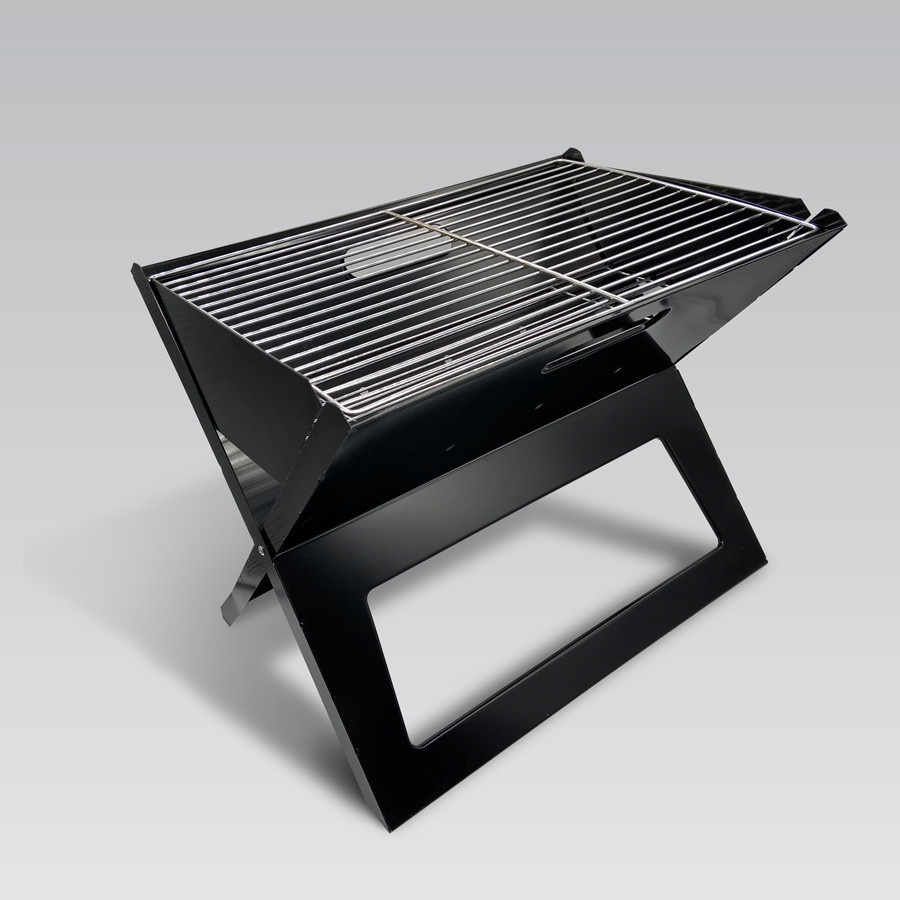 Матеріал: метал, товщина 0,5 мм Розмір: 45 х 30 х 35 см Грати гриль виготовлені з металу, має хромоване покриття, розмір: 41 х 29 см Зручний механізм складання “кейсом” Прорізні ручки на корпусі для зручного транспортування