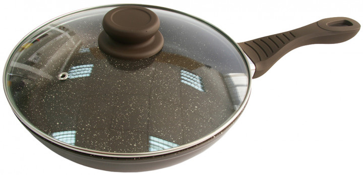 Сковорода Lessner Chocolate Line виготовлена ​​з литого алюмінію з мармуровим антипригарним покриттям. Температура рівномірно розподіляється дном сковороди, в ній можна гасити, смажити, пасерувати з мінімальною кількістю масла. Бакелітова ручка Soft Touch (силіконове покриття) витримує температуру до 180 ° С, а також не ковзає в руках, що зручно при перенесенні сковороди. Скляна кришка із термостійкого скла входить у комплект. Сковорода Lessner Chocolate line 88364-20 універсальна та довговічна, а для людей, які ведуть здоровий спосіб життя – посуд із мармуровим покриттям буде гарним вибором для приготування низькокалорійних страв.