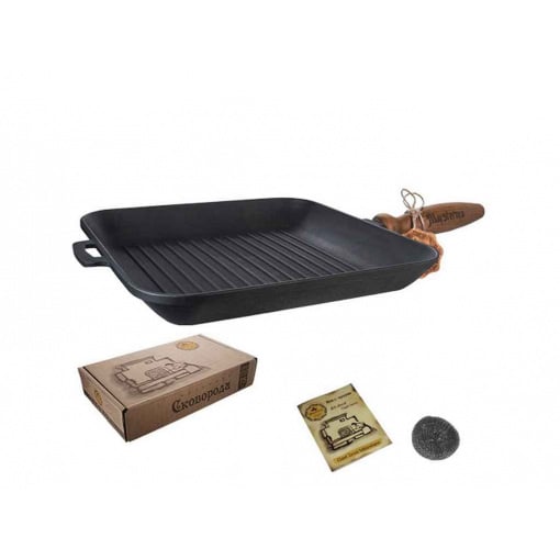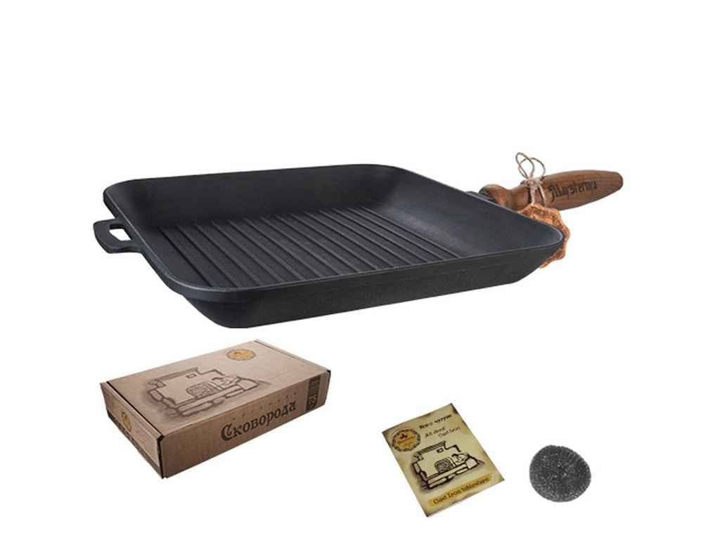 Детальні характеристики Сковорода-гриль чавунна квадратна 28*28*4 см S&T Т307Ук.