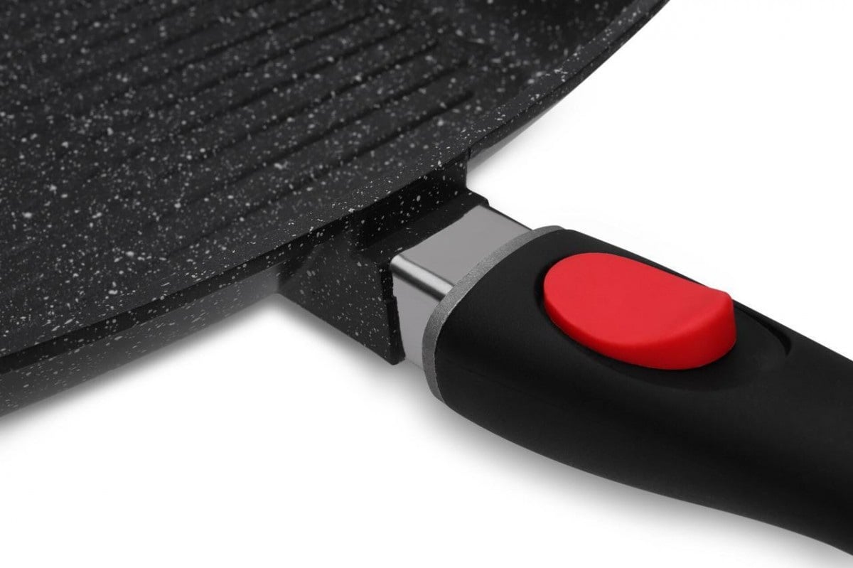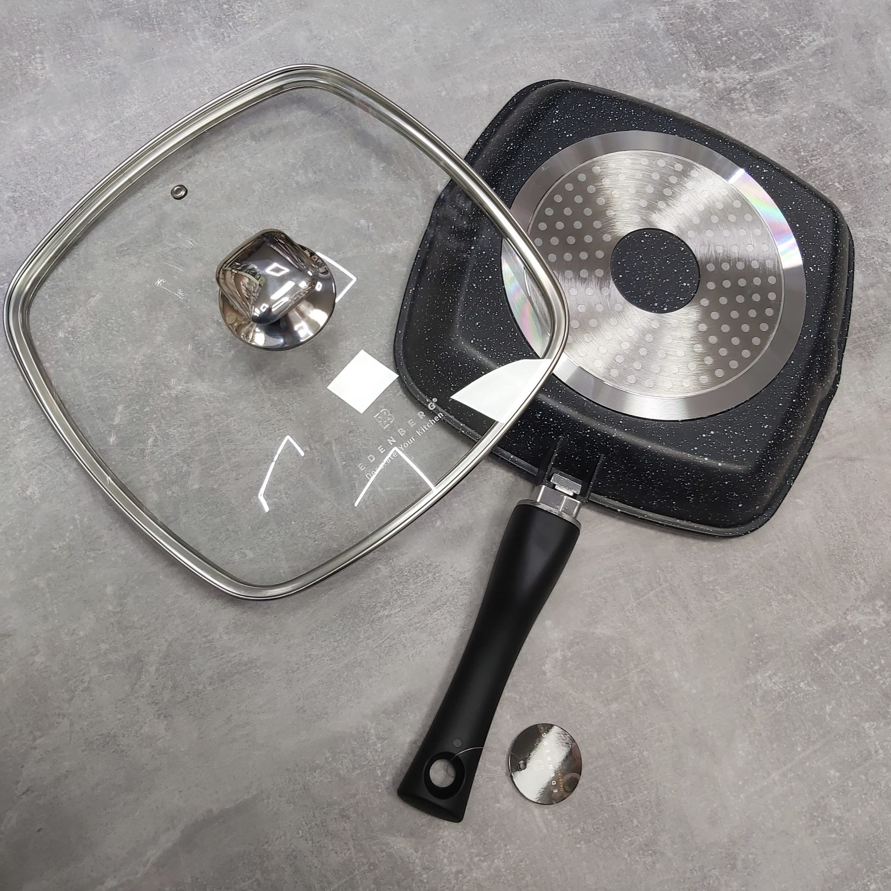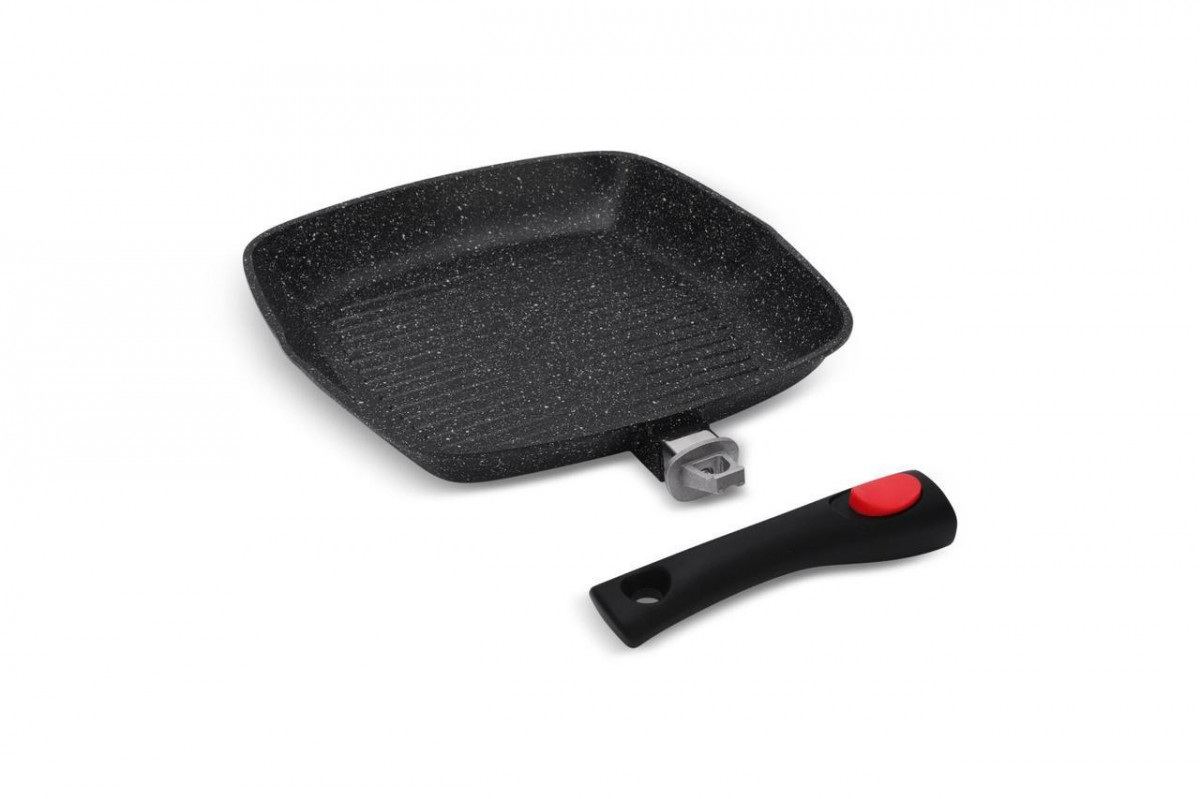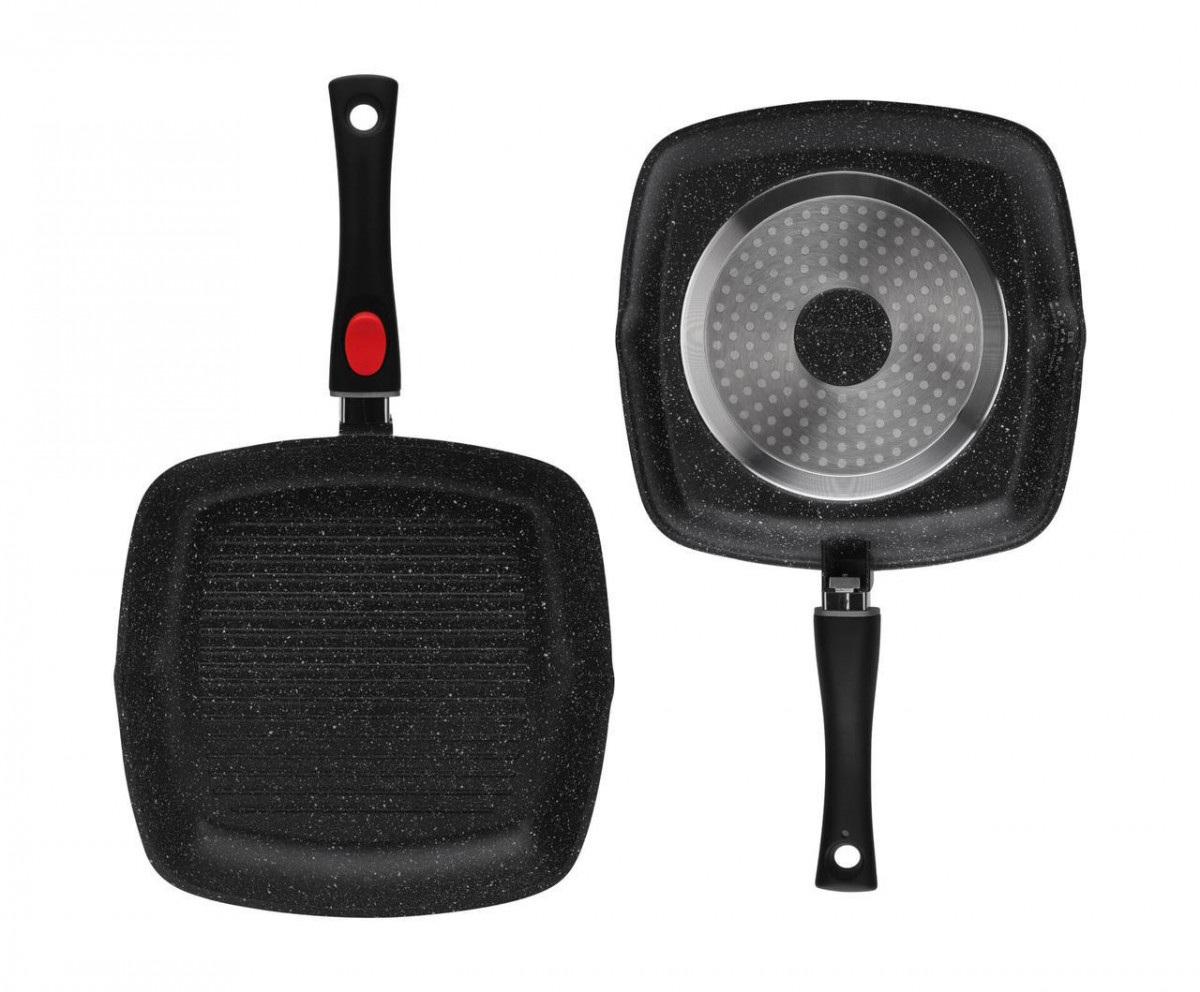 Сковорода гриль Edenberg EB-8130 28 см Сковорода-гриль із кришкою алюмінієва сковорода із двостороннім тришаровим мармуровим покриттям із мармурової крихти. Знімна ручка дозволяє зручно зберігати сковороду в холодильнику, можна використовувати сковороду в духовці, зливний носик для масла. При правильному використанні ця сковорода прослужить значно довше, зберігаючи антипригарні властивості. Особливості: Ручка виготовлена ​​з бакеліту, не ковзає, зручно лягає в руку; Сковорода легко чиститься; Виконана із екологічно чистого матеріалу; Висота стінок 5.5 см; Підходить для всіх видів плит;