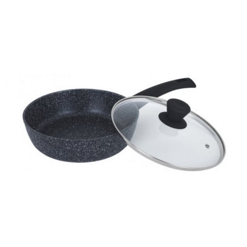Ringel - бренд якісного посуду та аксесуарів для кухні. Торгова марка Ringel - приклад кращого досвіду європейських виробників посуду та вміння забезпечити максимум якості за прийнятною ціною. Посуд від бренду Ringel – ідеальний помічник на вашій кухні. Ringel – залізний характер, блискучий смак! Колекція сковорідок Koriander, виготовлена з високоякісного кованого алюмінію 3,2 мм, має надстійке антипригарне мармурове покриття Marble coating, яке є дуже зносостійким навіть при інтенсивному використанні. Продукція Koriander також має зовнішнє антипригарне покриття – для легкого догляду. Ручки всієї серії мають ергономічну форму та м'яке покриття soft touch, що не нагрівається, завдяки чому приготування страв стане зручнішим та приємнішим. Зручна форма ручки на кришці, яка є підставкою для ложки під час приготування. Сковорода з кришкою глибока d-24 см алюміній з антипригарним покриттям Ringel Koriander 1107-24RG