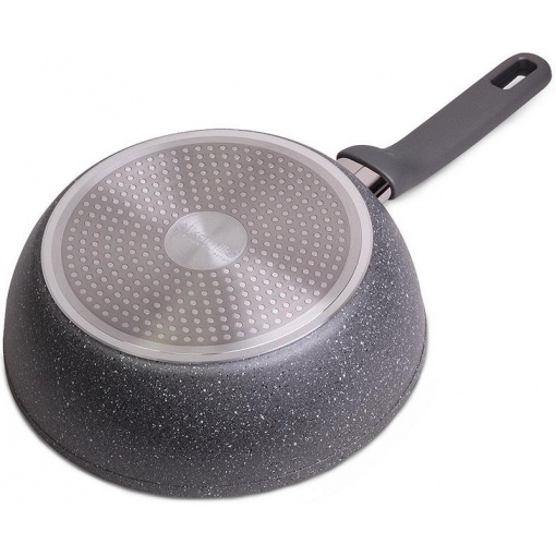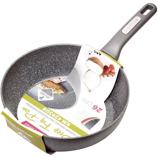Діаметр: 26 см, глибина: 7,5 см. Виконана сковорода з високоякісного литого алюмінію. Багатошарове антипригарне покриття з гранітним нанокомпозитом дозволяє легко приготувати страви різного ступеня прожарювання. Глибина дозволяє використовувати сковороду як сотейник. Посилене, багатошарове дно дозволяє сковороді рівномірно нагріватися навіть на невеликій конфорці і використовувати її на всіх типах плит. Ергономічна ручка з бакеліту дозволяє тримати її без прихваток. Сковорода чудово миється як вручну, способом теплого замочування, так і за допомогою посудомийної машини.