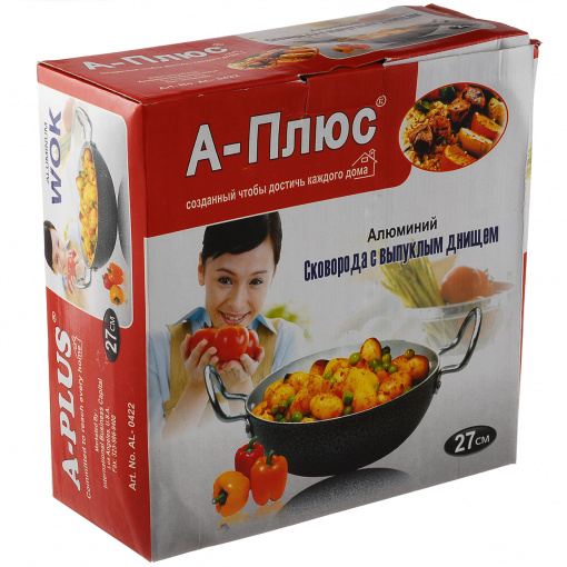 Детальні характеристики Сковорода WOK алюмінієва 27 см A-PLUS 0422.