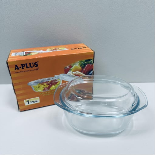 Скляна овальна каструля зі скляною кришкою 1 л A-Plus 4008