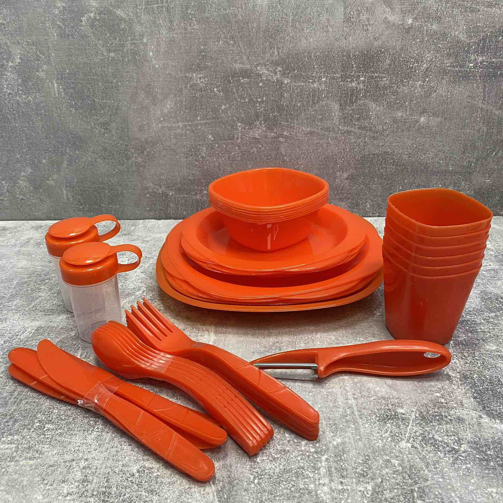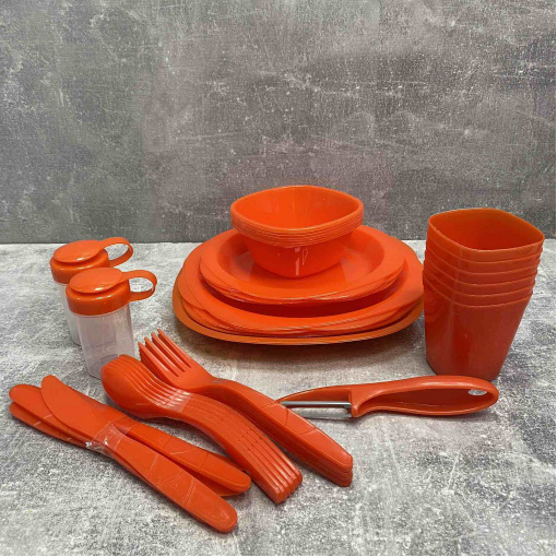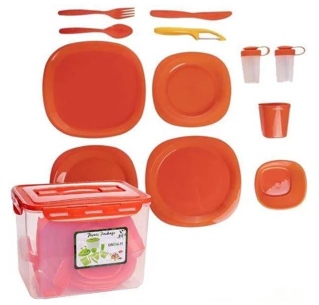 Універсальний набір для пікніка у зручному переносному боксі, це те, що ви шукали! Набір виготовлений із високоякісного харчового (первинного поліпропілену). Весь посуд виконаний у сучасному стилі, що підкреслить красу вашого пікніка, а яскраві тарілки та склянки буде легко знайти навіть на зеленій траві. Ще один плюс набору - це те, що посуд не б'ється і легко миється. Посуд можна використовувати в мікрохвильовій печі та посудомийній машині. Незамінний подарунок для любителів туризму. Набір для пікніка це все, що потрібно для організації заміської подорожі. Легкий посуд зручно взяти із собою. Яскраві кольори та привабливий дизайн створять затишну атмосферу та доповнять радісні моменти на природі. Міцний пластик підходить для багаторазового використання.