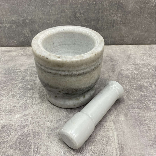 Мармурова ступка нагоді для кожної господині, яка любить радувати своїх близьких натуральною та смачною їжею. Ступка призначена для розтирання різних спецій, трав та приготування ароматних соусів та заправок. Камінь не вбирає запахи і тому всі спеції, приготовлені в ступці, збережуть свої аромати для Ваших страв і не змішаються з ароматами приготовлених раніше ступки. Ступка легко миється, вона є довговічною та красивою.