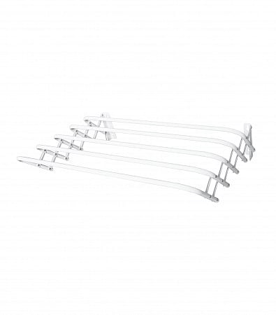 Вид: Сушарка Призначення: Для одягу Тип установки: Настінний Матеріал: Метал Колір: Білий Максимальне навантаження: 4 кг Робоча довжина поверхні: 4 м Кількість стрижнів/трубок: 5 Діаметр труби: 12 мм Розмір у складеному стані: 80 х 19,5 х 9 см