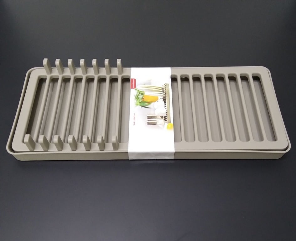 Предмет сучасної невід'ємної кухонної частини призначений для стікання води з вимитого посуду та природного сушіння. Сушарка для посуду виготовлена із безпечного пластику. Конструктивно передбачена можливість встановити будь-яке столове приладдя.