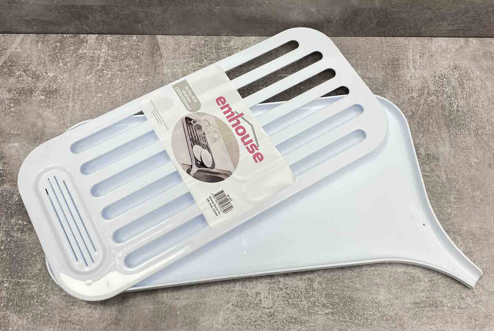 Сушка плоска для посуду-виготовлений з гіпоалергенного матеріалу - пластик. Турецького виробництва ТМ ЕMHOUSE. Матеріал стійко витримує вологу, механічні, хімічні дії.  Сушка для столових приладів та посуду дозволяють максимально якісно використовувати внутрішній простір на Вашій кухні. Призначений для сушіння посуду. Ця модель оснащена носиком для зливу води з піддону. Гладка поверхня легко миється.