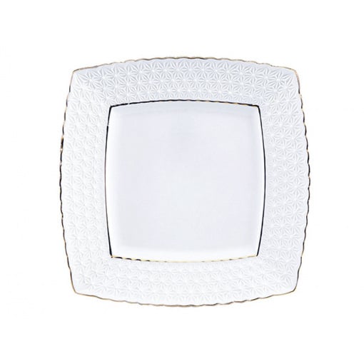 Порадуйте себе або своїх близьких витонченим посудом з порцеляни від ТМ Interos. Порцеляна це благородний і найдосконаліший вид кераміки. Фарфорова серія Снігова Королева символізує комфорт і багатство.. Тарілка фарфорова 23 см квадратна Interos Снігова Королева 223723-А