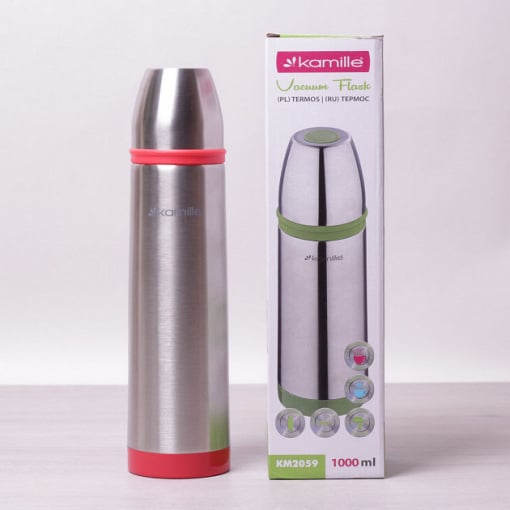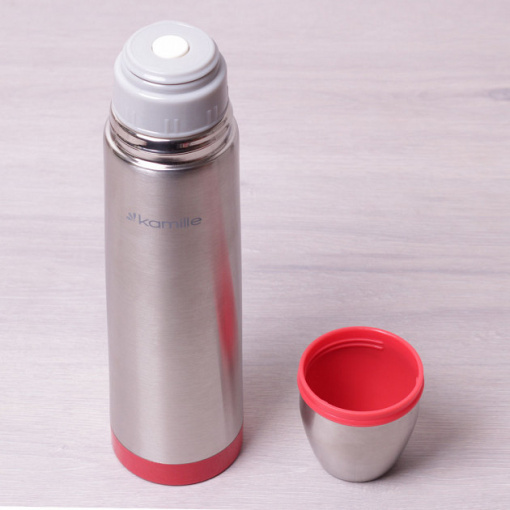 Термос Kamille 1000 мл із нержавіючої сталі сріблястий/червоний КМ-2059