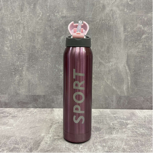 Термос-поїлка з трубочкою 500 мл Sport New Stenson MT-3455-0,5 рожевий