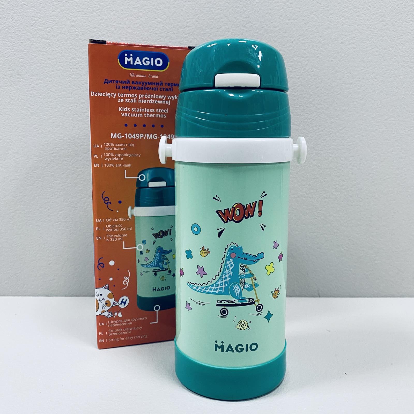 Термос із нержавіючої сталі дитячий з трубочкою 350 мл Magio MG-1049-1 зелений Термос вакуумний дитячий – практичний та приємний аксесуар, який збереже температуру для Вашої дитини. Термос можна брати до школи, дитячого садка, на тренування. Він підходить для прогулянок, поїздок та подорожей. Виготовлений із нержавіючої сталі. Нержавіюча сталь відрізняється міцністю та довговічністю. Вона екологічна, не вбирає запахи та не змінює смаку напою. До термоса в комплекті йде соломинка для пиття та зручний ремінець. Приємні малюнки та забарвлення потішать Вашу дитину. Характеристика: Вигляд: Термос Матеріал: Нержавіюча сталь Об'єм: 350 мл Колір: Зелений