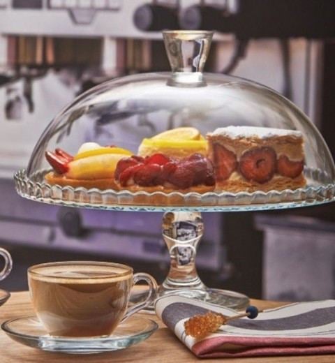 товсте ударостійке скло, з якого виготовлена ​​тортівниця, робить його довговічним у повсякденному використанні.