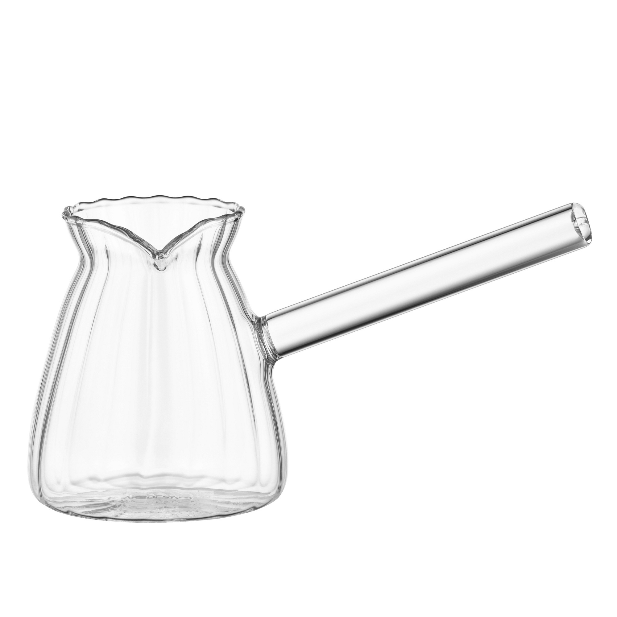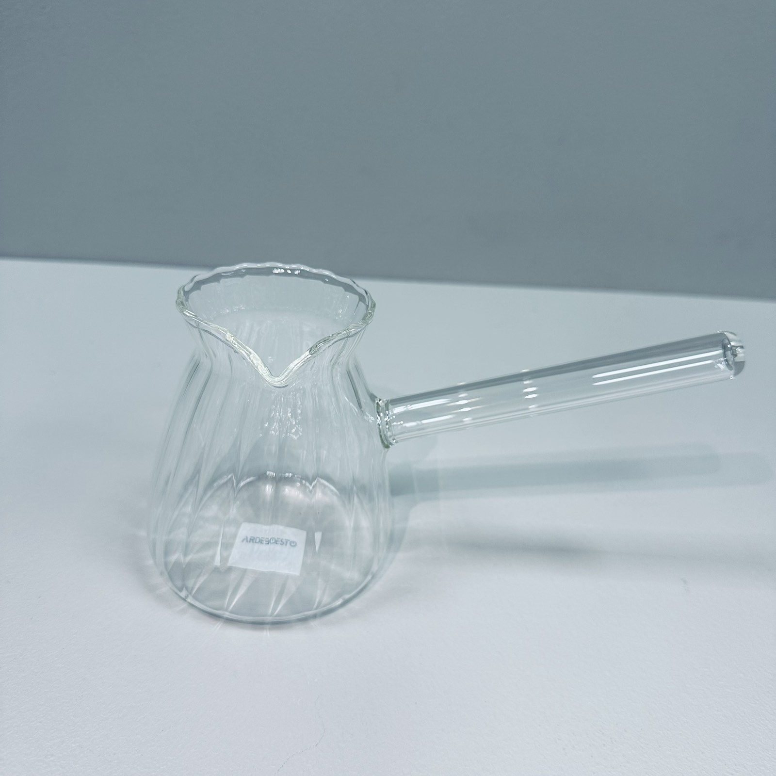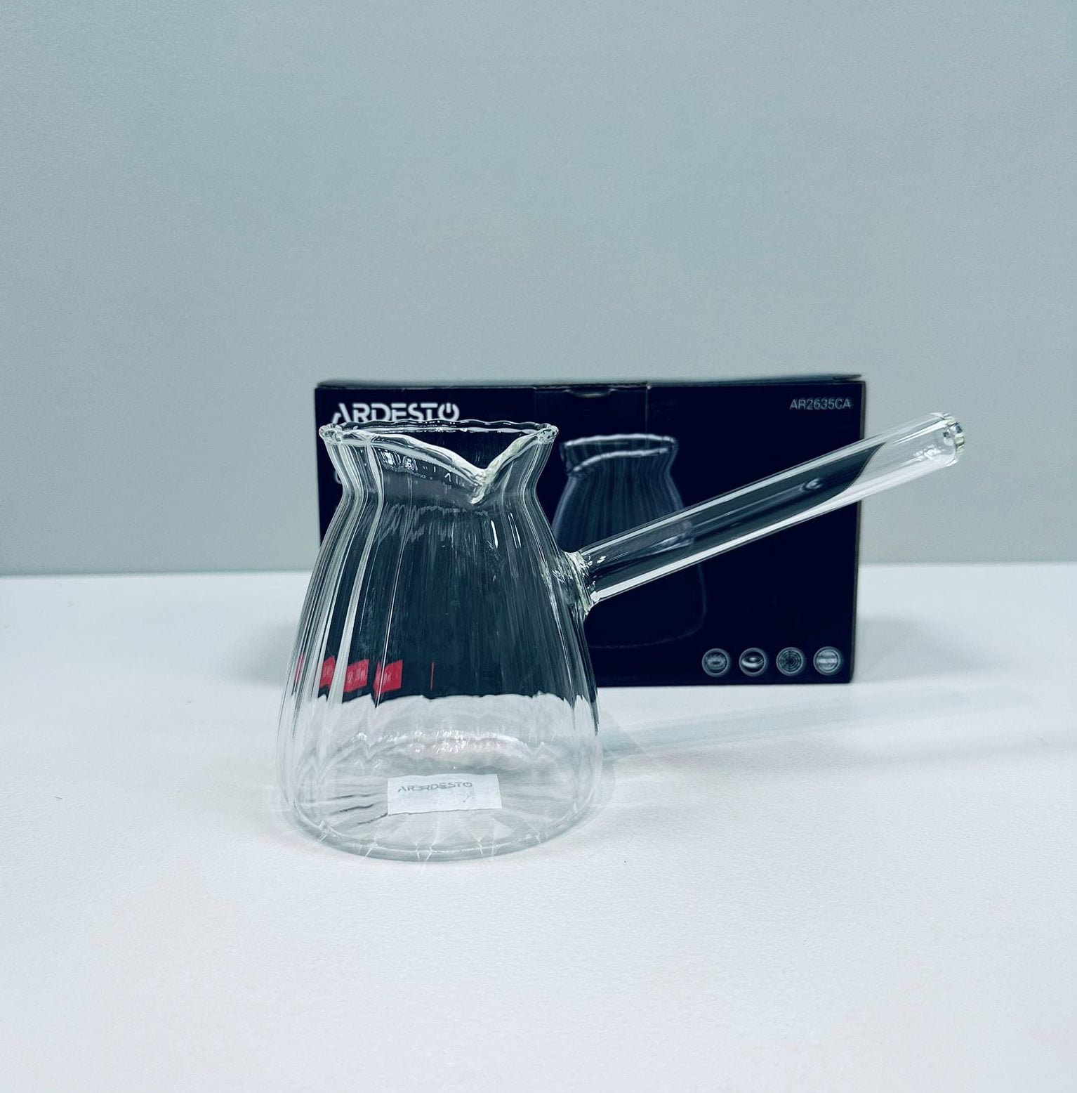 Ardesto – бренд якісної та надійної побутової техніки, кліматичного обладнання, посуду та аксесуарів для дому. Спільна робота з передовими центрами розробки дозволила реалізувати інноваційні та сміливі тенденції у світі промислового та побутового дизайну. Характеристика: Вид: Турка Матеріал: Боросилікатне скло Матеріал ручки: Боросилікатне скло Об'єм: 0,35 л Висота: 10,5 см Діаметр: 6,3 см Довжина з ручкою: 21 см Колір: Прозорий Можна мити в посудомийній машині: Так Сумісність з плитами використовувати на помірному вогні