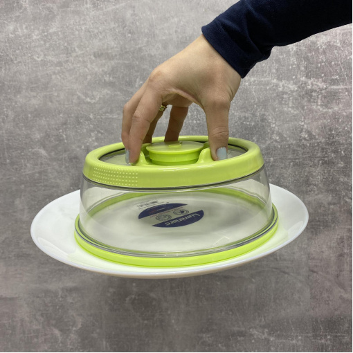 Вакуумна багаторазова кришка Vacuum Food Sealer - це просто знахідка для будь-якої господині. Ви не тільки заощаджуєте на продуктах, а й зберігаєте улюблені страви довше. Вакуумні кришки Press Dome призначені для зберігання їжі. З вакуумною багаторазовою кришкою для зберігання продуктів Ваші продукти завжди будуть свіжими та смачними. Ви зможете організувати порядок у холодильнику, а також заощадити час на перекладанні приготовленої їжі у харчові контейнери. Користуватися Вакуумною багаторазовою кришкою для зберігання продуктів легко. Просто поставте кришку над їжею в контакт з чистою та гладкою поверхнею тарілки та злегка натисніть на верхню частину кришки, щоб створити вакуумне ущільнення.