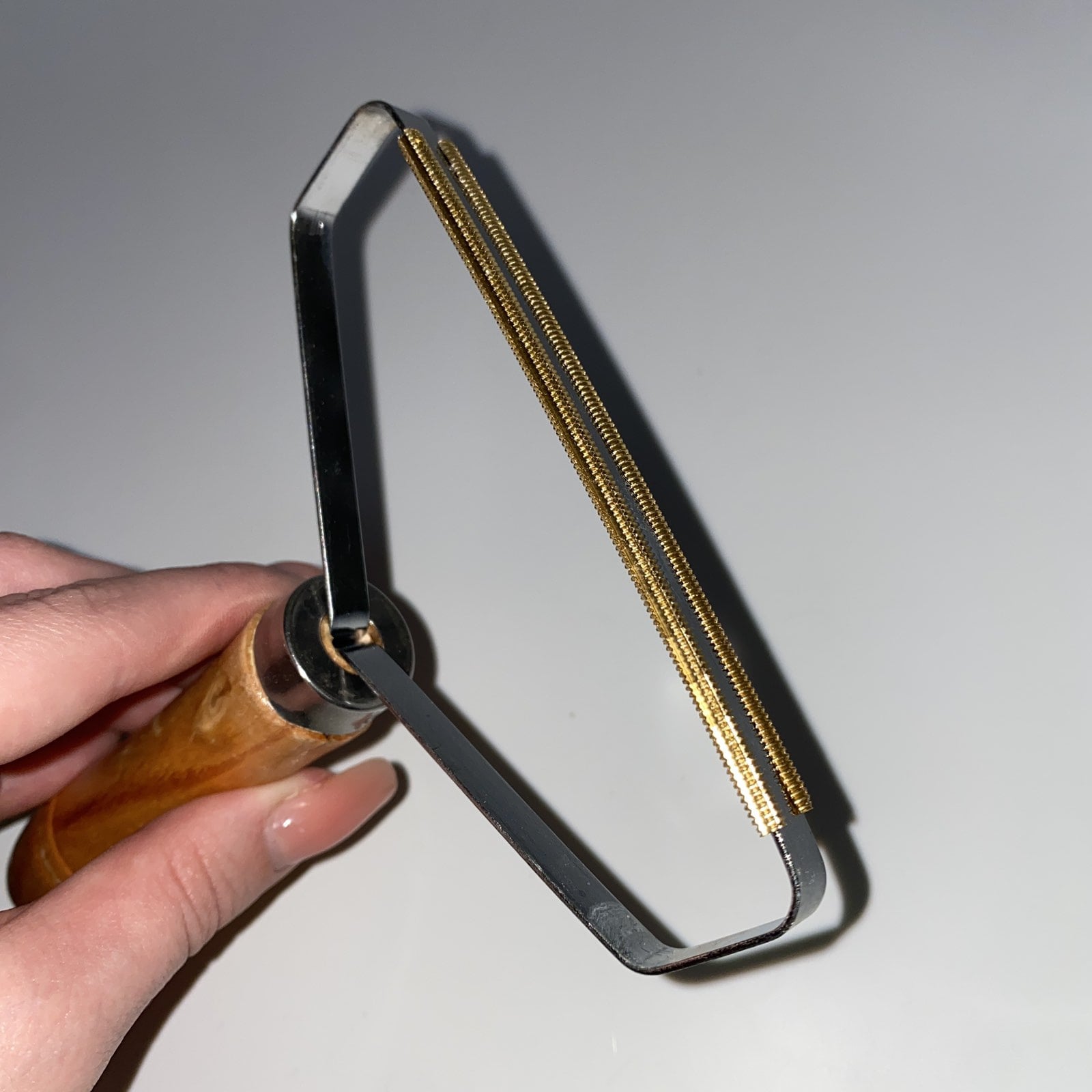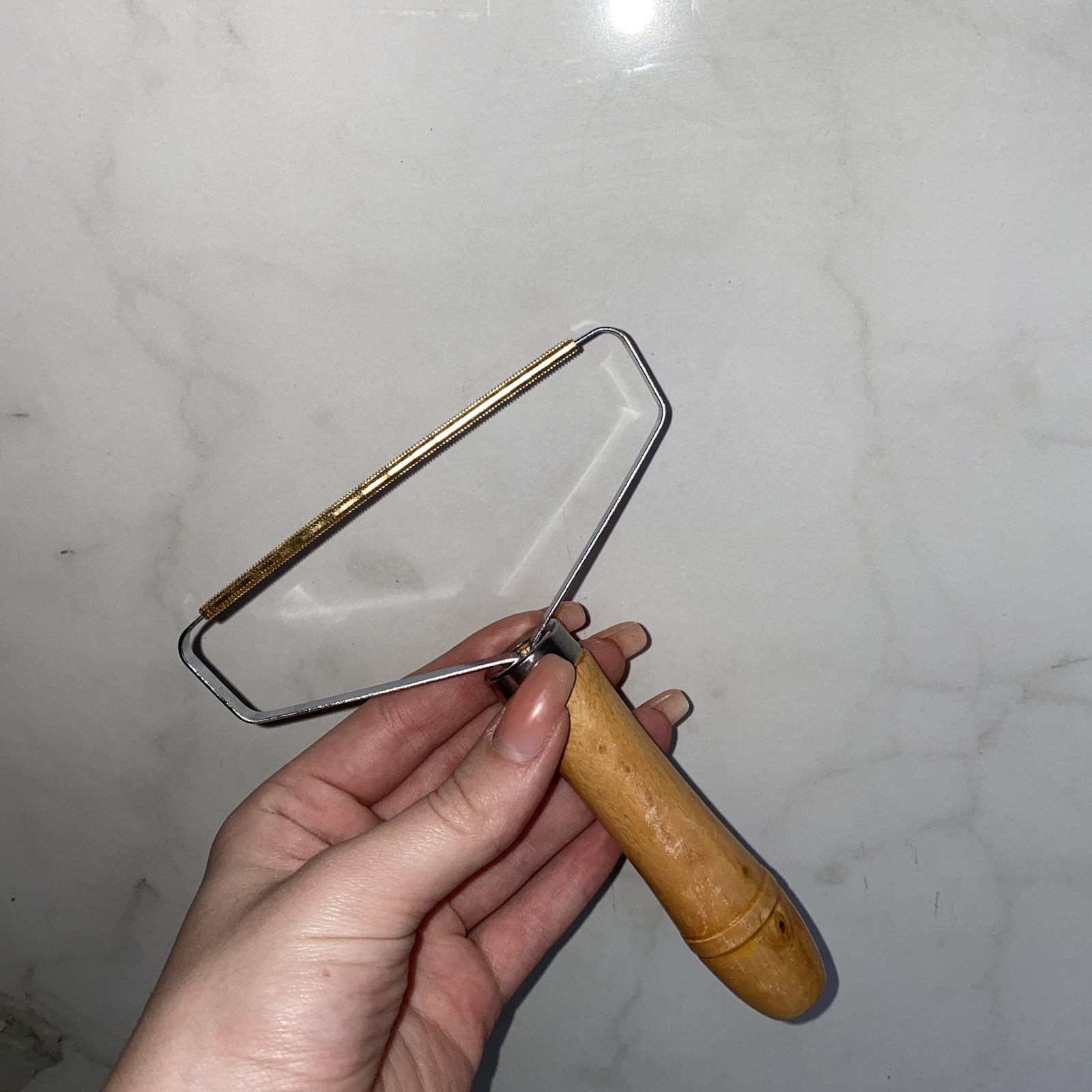 Валик для видалення ковтунців з одягу Stenson MT-00333 Валик для видалення ковтунців, прилад для видалення ковтунців з тканини, легко видаляє шерсть свійських тварин, крихти, ворс та багато іншого, не залишаючи слідів. Відмінно підходить для чищення одягу, постільних речей, меблів та оббивки автомобіля. Характеристика: Матеріал робочої частини: Нержавіюча сталь Матеріал ручки: Дерево Розмір: 12,5*15,5 см Колір: Сталевий/коричневий